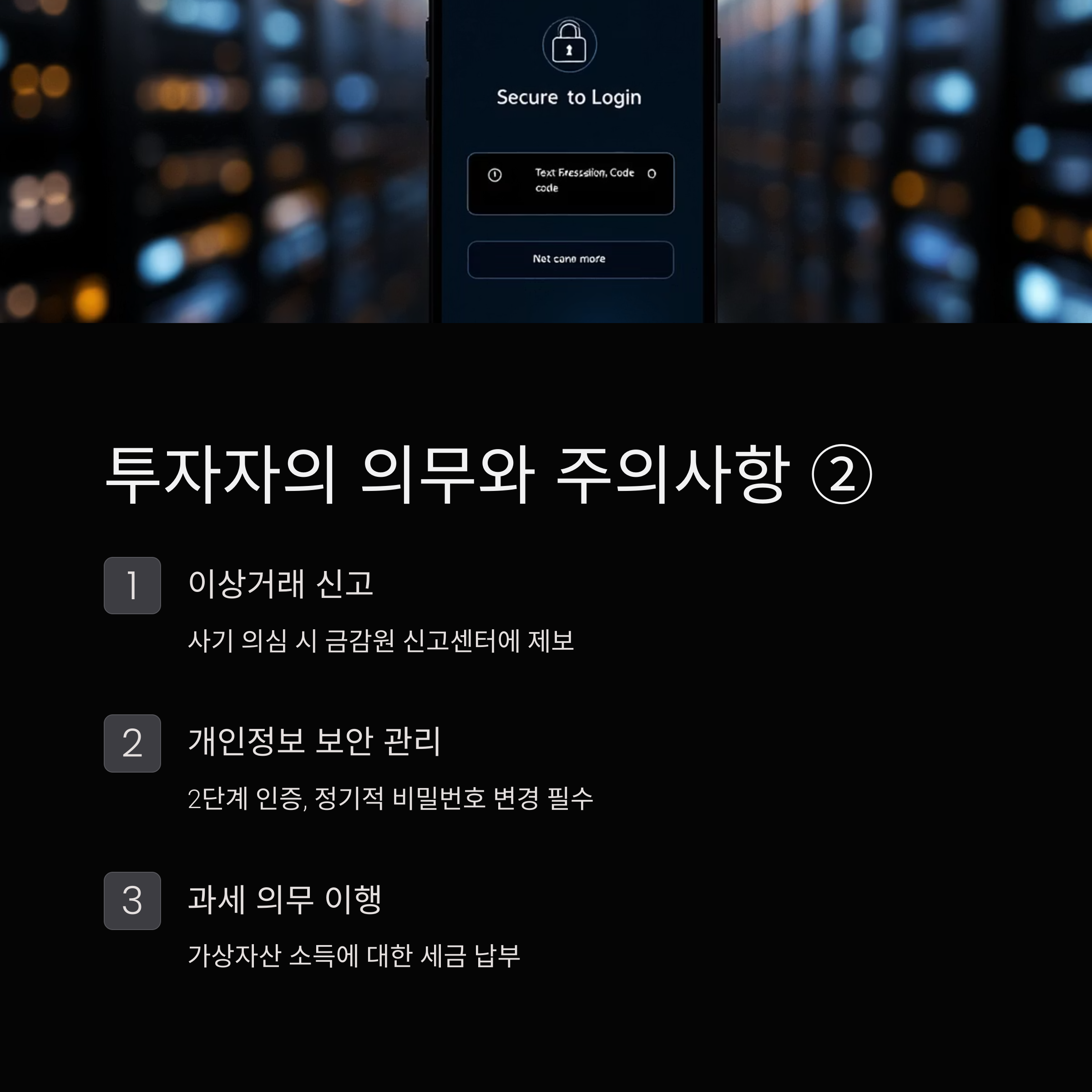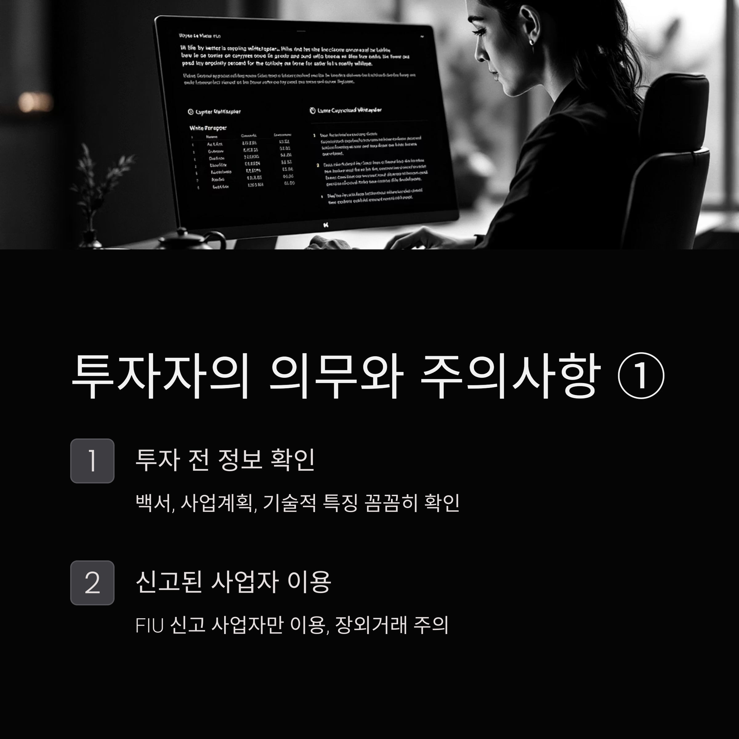 강화된 권리만큼이나 투자자들에게도 새로운 의무와 주의사항이 생겨납니다. 안전한 가상자산 투자를 위해서는 다음 사항들을 반드시 숙지해야 합니다.