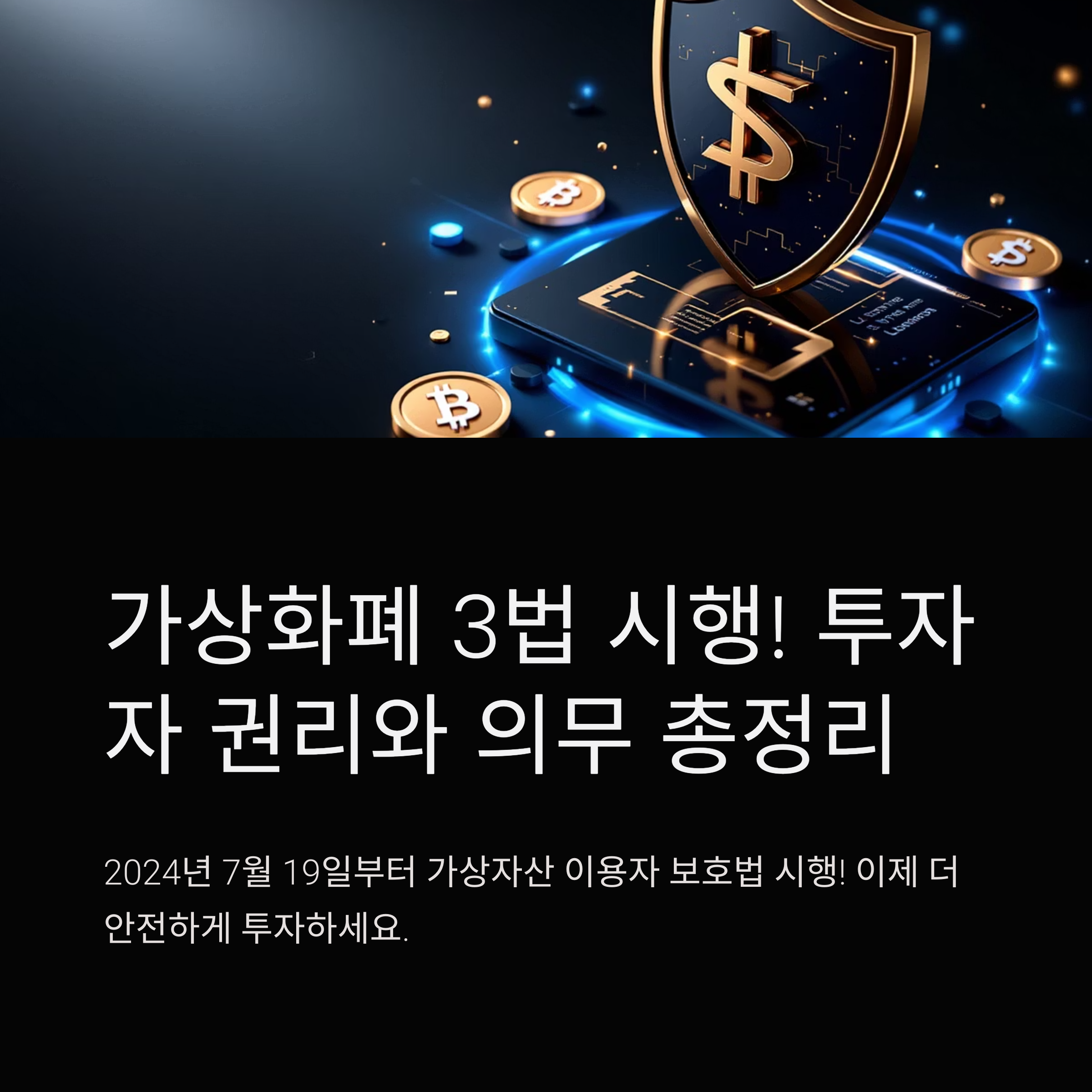 가상자산 시장이 드디어 제도권 안으로 들어섭니다! 2024년 7월 19일부터 '가상자산 이용자 보호 등에 관한 법률(이하 가상자산이용자보호법)'이 시행되면서, 이제 가상자산 투자자들도 보다 안전한 환경에서 거래를 할 수 있게 되었어요. 그동안 "가상화폐는 법적 보호를 못 받는다"는 불안감에 투자를 망설이셨던 분들도 많으셨을 텐데요. 이번 가상화폐 3법 시행으로 투자자들의 권리는 강화되고, 사업자들은 더 큰 책임을 지게 됩니다. 하지만 권리에는 의무가 따르는 법! 앞으로 우리가 어떤 권리를 누릴 수 있고, 또 어떤 점을 주의해야 하는지 자세히 알아볼까요?