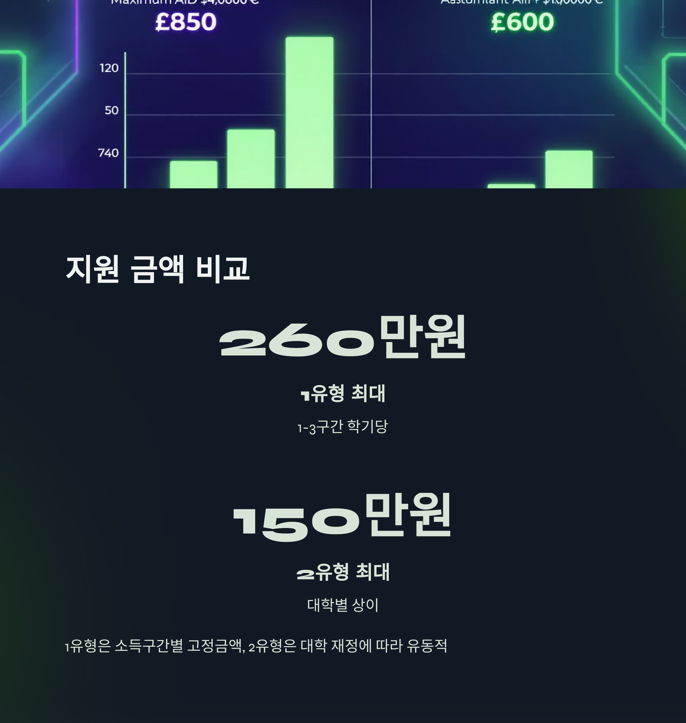 - 중복 신청 가능: 1유형과 2유형을 동시에 신청할 수 있으며, 합산 금액이 등록금을 초과하지 않으면 중복 수혜 가능.