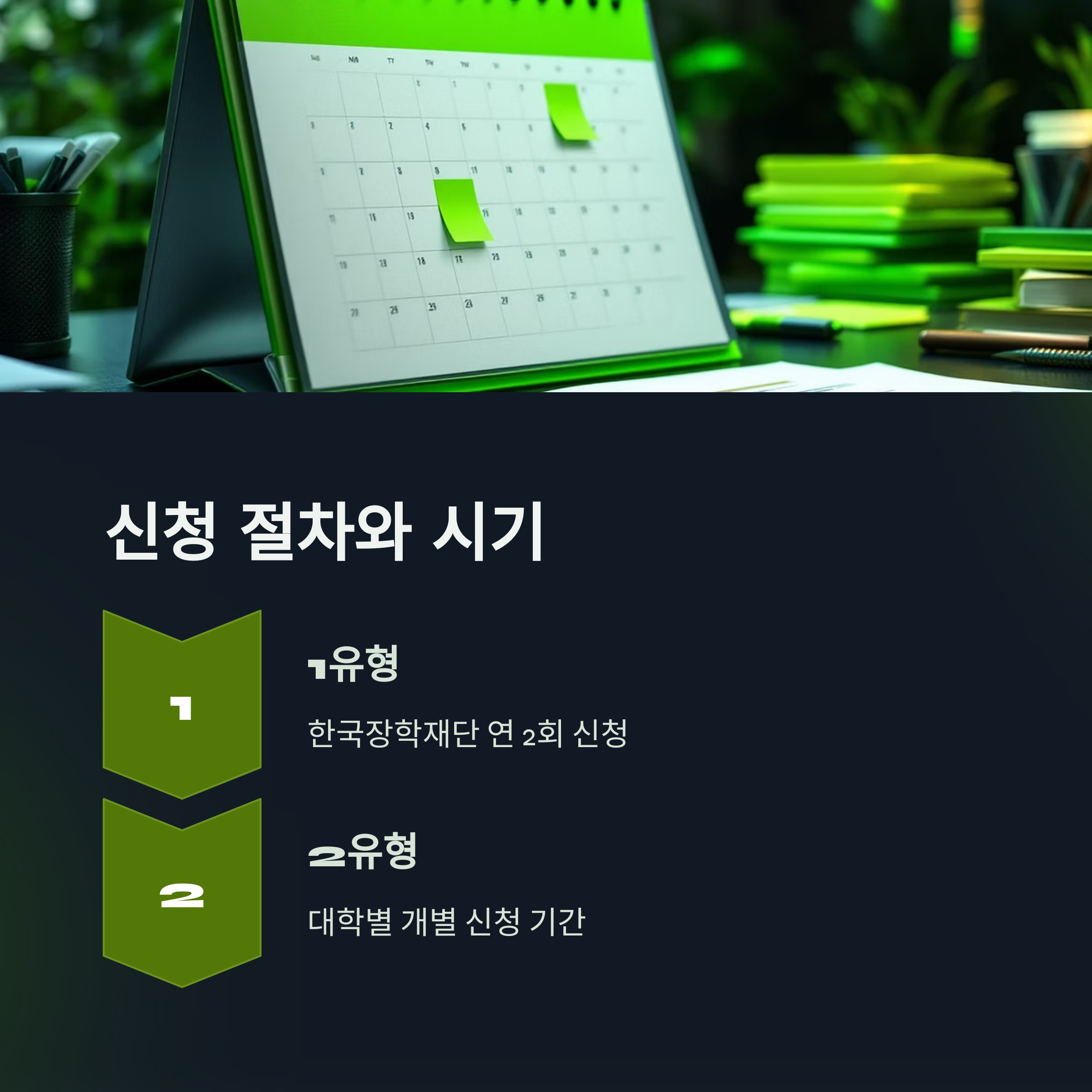 2유형은 대학별로 신청 기간과 방법이 상이합니다. 일부 대학은 1유형 신청자 중에서 자동 심사하지만, 별도 서류를 요구하는 경우도 있습니다.