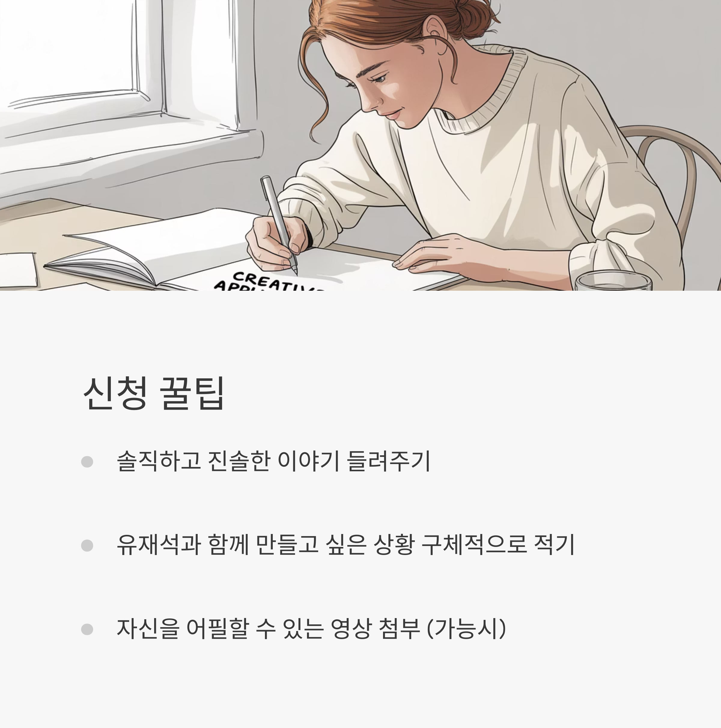 • 유재석과의 케미 상상: 유재석과 함께 어떤 상황을 만들고 싶은지 구체적으로 적는다면 제작진에게 더욱 깊은 인상을 줄 수 있습니다.