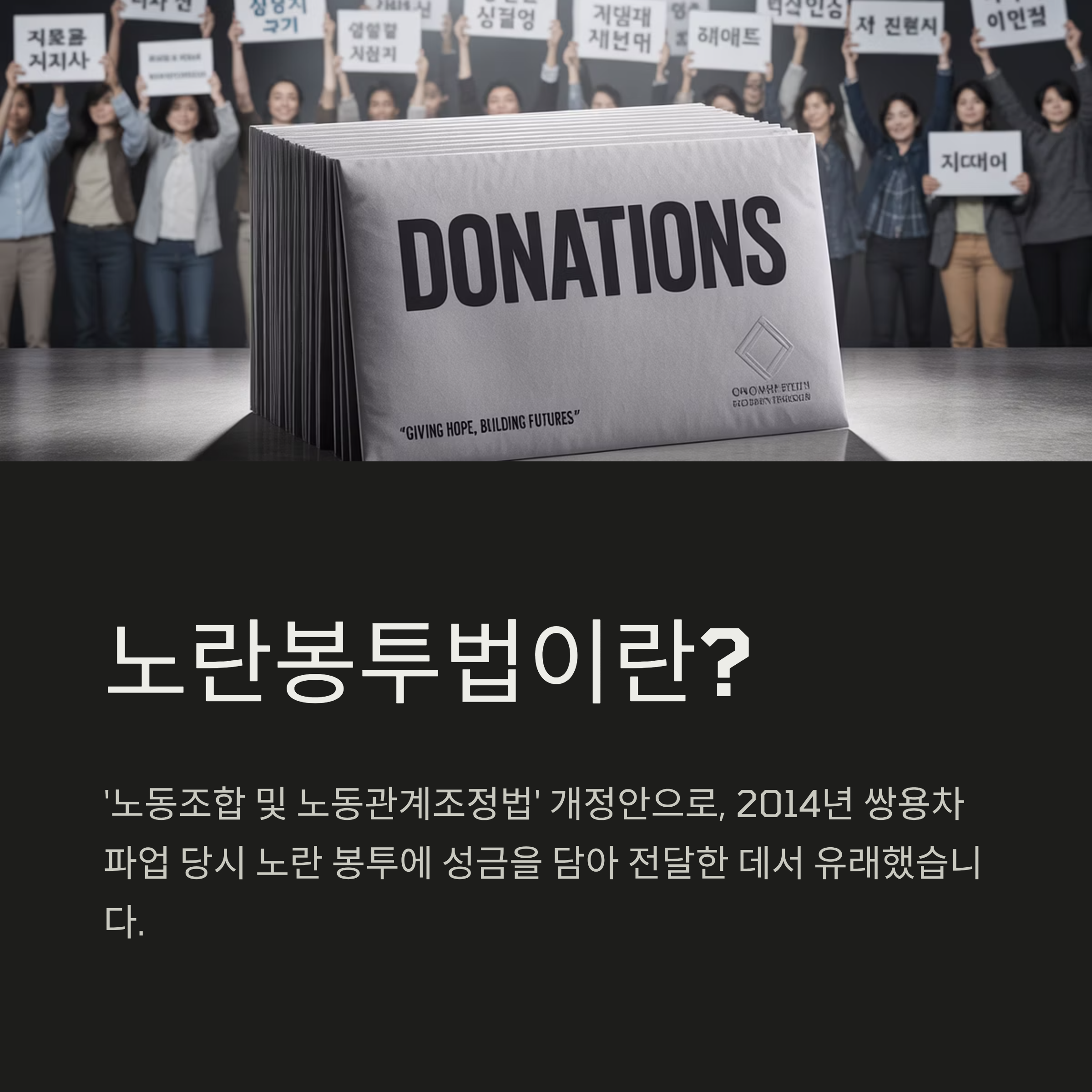 안녕하세요, 여러분! 최근 뉴스에서 ‘노란봉투법’이라는 단어를 자주 접하고 계실 텐데요. 이름만 들어서는 무슨 법인지 감이 잘 안 오시죠? 2014년 쌍용차 파업 당시 시민들이 노동자들의 손해배상액을 돕기 위해 노란 봉투에 성금을 담아 전달하면서 붙여진 이름입니다. 정식 명칭은 ‘노동조합 및 노동관계조정법’ 개정안으로, 현재 국회에서 뜨거운 논쟁이 벌어지고 있는 법안입니다.