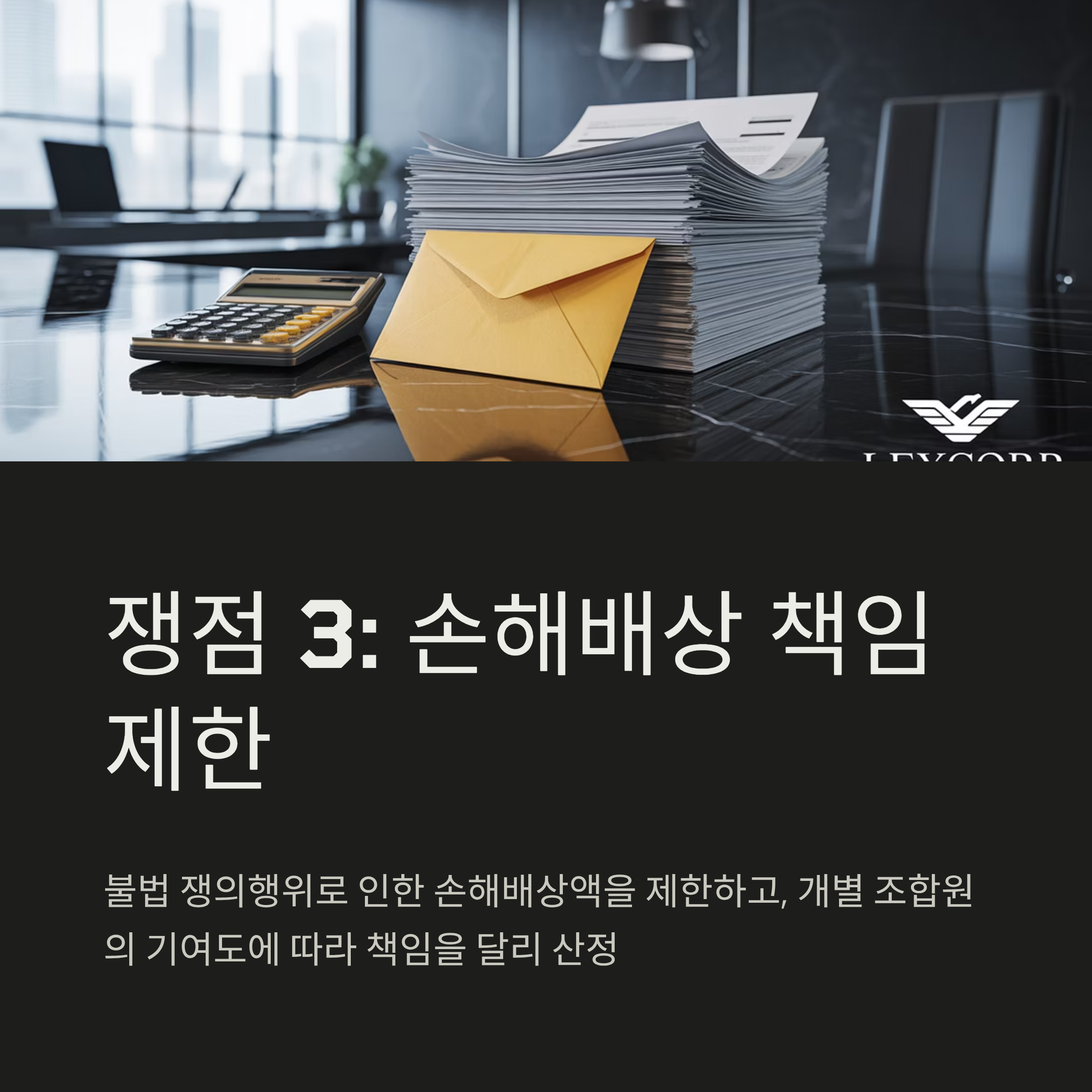 마지막 핵심 쟁점은 불법 쟁의행위로 발생한 손해에 대한 기업의 손해배상 청구를 제한하는 내용입니다. 과거에는 파업으로 인한 손해에 대해 노조나 개별 조합원에게 막대한 금액의 손해배상 소송을 제기하는 경우가 많았습니다. 이 때문에 노동자들이 '빚더미'에 앉게 되는 일이 발생했고, 노조 활동을 위축시키는 요인으로 작용하기도 했습니다.