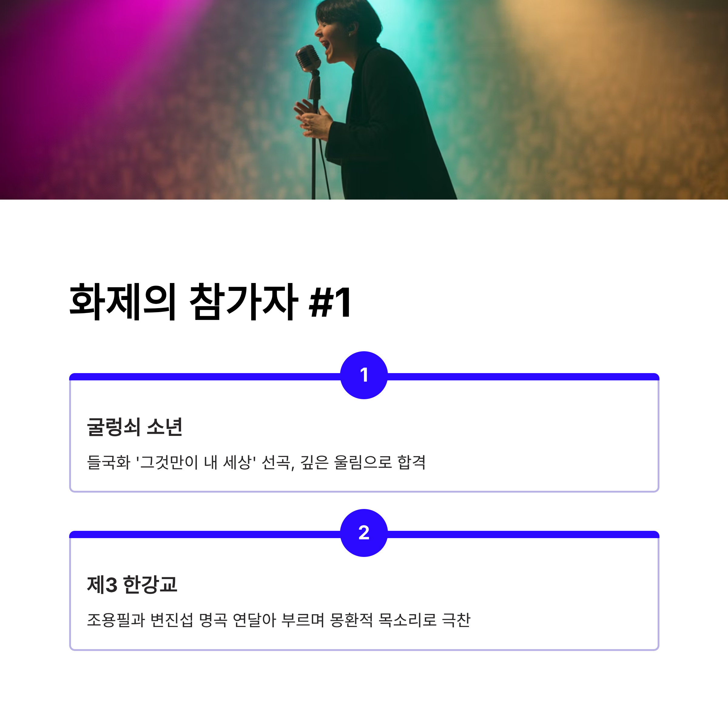 오디션의 문이 열리자마자 예상치 못한 참가자들이 등장하며 유재석과 하하를 놀라게 했습니다. 특히 ‘굴렁쇠 소년’으로 참가한 인물은 들국화의 ‘그것만이 내 세상’을 선곡해 깊은 울림을 선사하며 합격을 이끌어냈고, ‘제3 한강교’는 조용필과 변진섭의 명곡을 연달아 부르며 몽환적이고 감성적인 목소리로 극찬을 받았습니다. ‘낙원상가’ 역시 여행스케치의 ‘별이 진다네’를 완벽하게 소화해내며 감탄을 자아냈죠. 이처럼 실력 있는 참가자들이 대거 포진하며 ‘놀뭐’ 서울가요제에 대한 기대감은 더욱 커지고 있습니다.