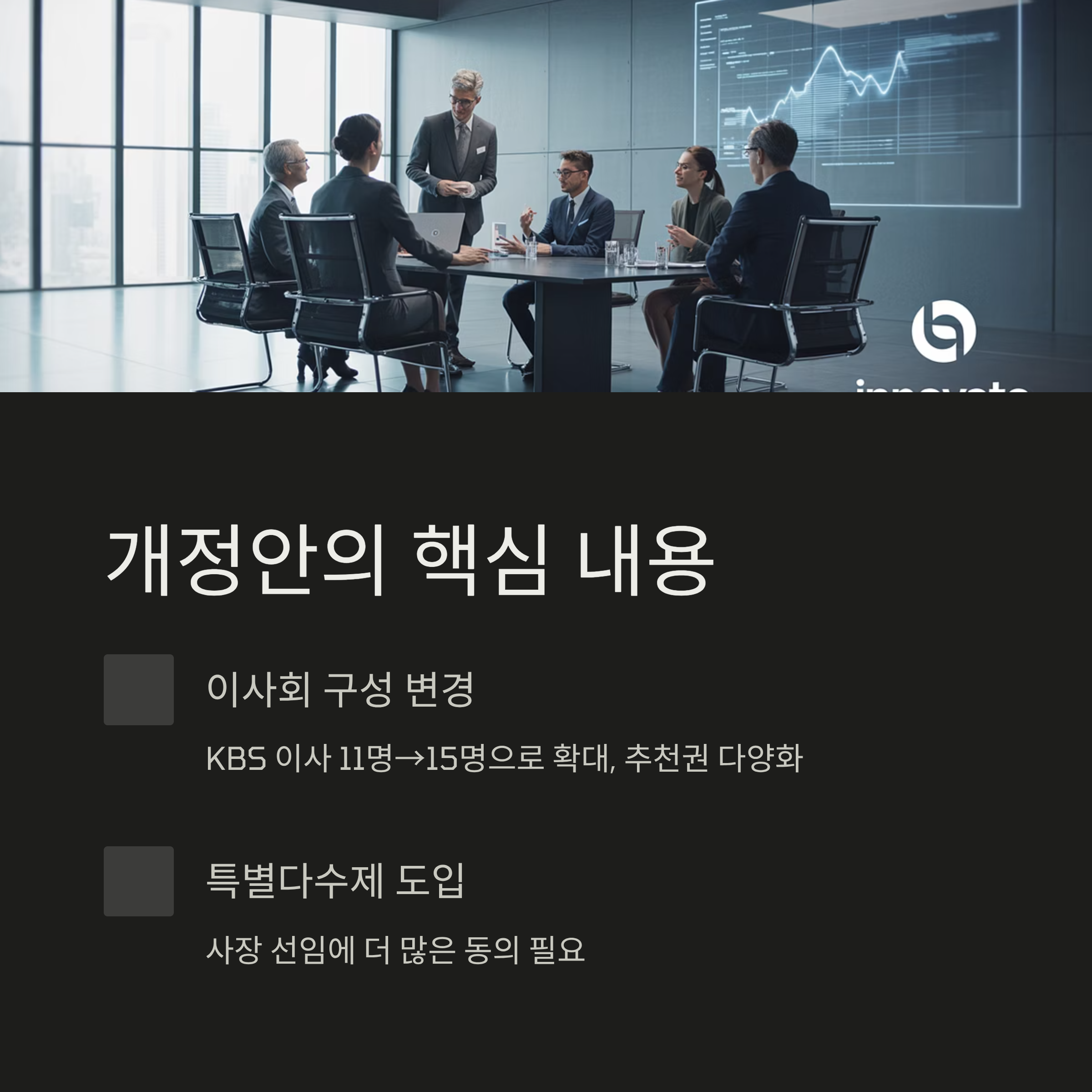 기존에는 대통령과 여야가 추천한 인사들로 방송통신위원회를 구성하고, 이 방통위가 공영방송의 이사를 추천하는 방식이었어요. 그러다 보니 정권이 바뀔 때마다 방송이 정치적 영향을 받는다는 비판이 끊이지 않았죠. 이러한 문제를 해결하고자 이번 방송3법 개정안은 이사회 이사 수를 늘리고, 추천권을 국회 외 다양한 직능단체와 시민단체에 배분하는 내용을 담고 있습니다. 예를 들어, KBS 이사는 기존 11명에서 15명으로 늘리고, 이 중 일부는 시청자위원회나 임직원, 언론 관련 학회 등에서 추천하도록 하는 식이죠.