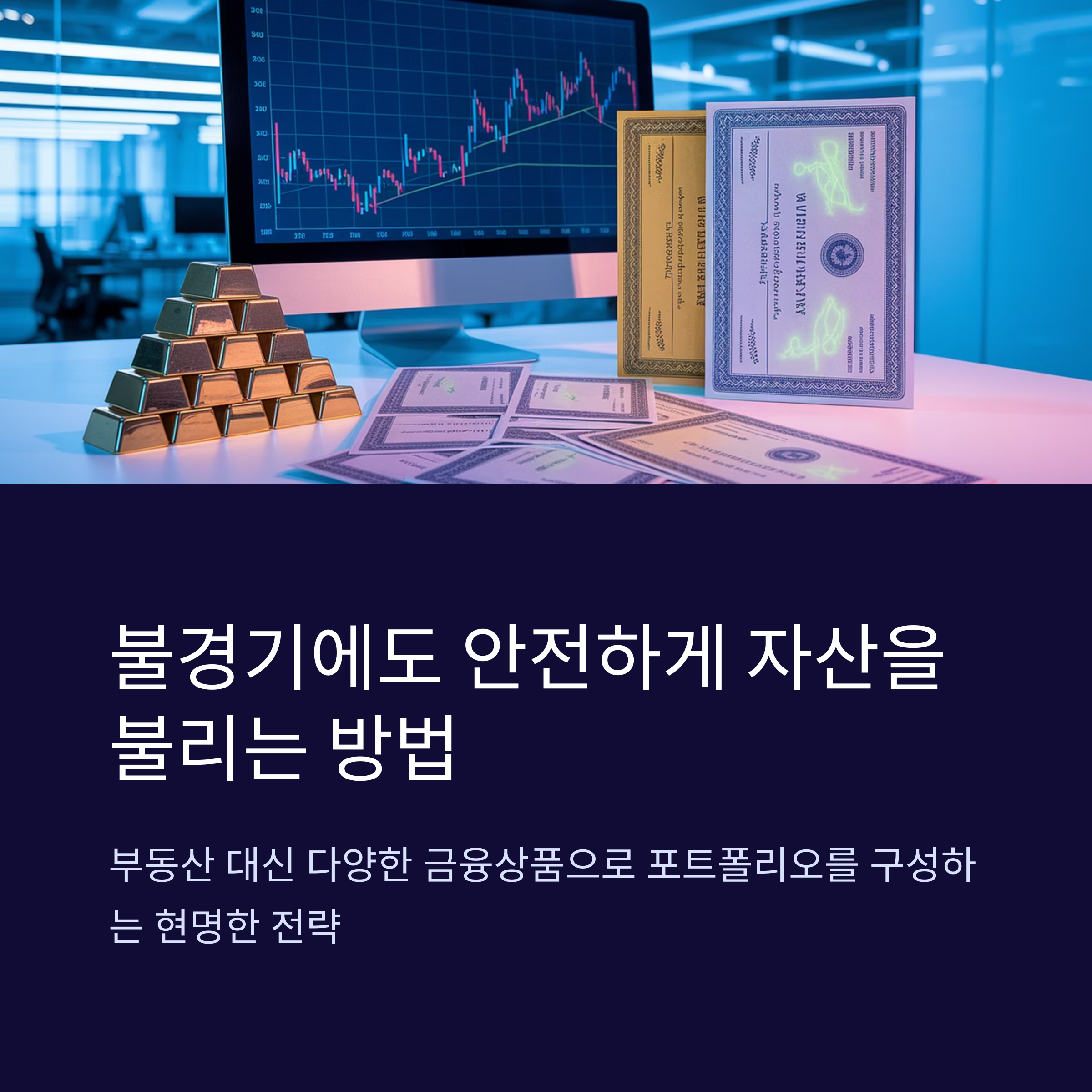 단일 자산에 집중하면 불경기 충격을 견디기 어렵습니다. **부동산 30% + 주식 30% + 안전자산 40%**처럼 비중을 나누고, 해외 비중을 20~30%로 유지하세요. 예를 들어 국내 리츠(REITs)로 부동산 수익을 노리는 동시에 글로벌 채권펀드로 안정성을 확보할 수 있습니다. 매월 일정 금액을 DCA(Dollar-Cost Averaging) 방식으로 투자하면 시장 타이밍을 잡는 부담도 줄어듭니다.