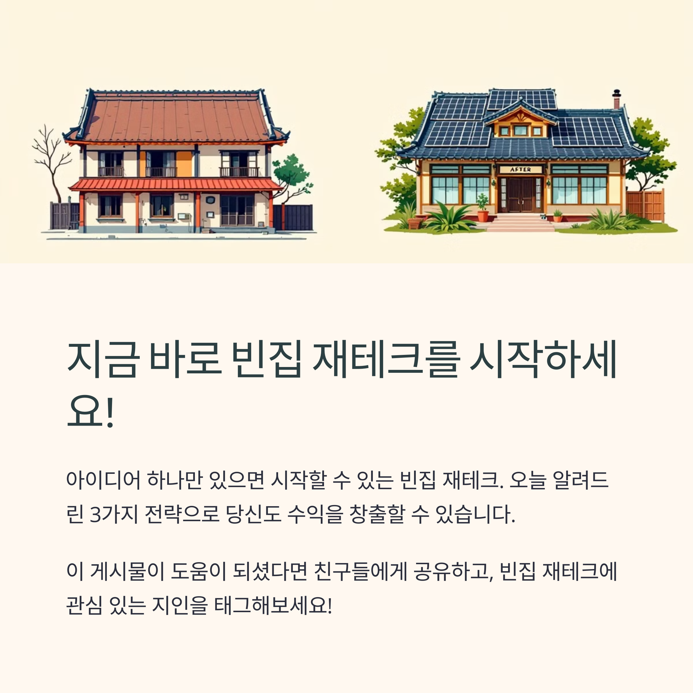 여러분도 이제 감이 오시죠? 빈집은 그냥 버려진 공간이 아니라, 제대로만 활용하면 확실한 자산이 될 수 있어요. 저 역시 처음엔 막막했지만, 하나하나 실행해보며 자신감이 붙었답니다. 돈을 많이 들이지 않아도, 아이디어 하나만 있으면 시작할 수 있는 게 바로 빈집 재테크의 매력이에요. 오늘 알려드린 전략 3가지, 꼭 한 번 실천해보시고요!
