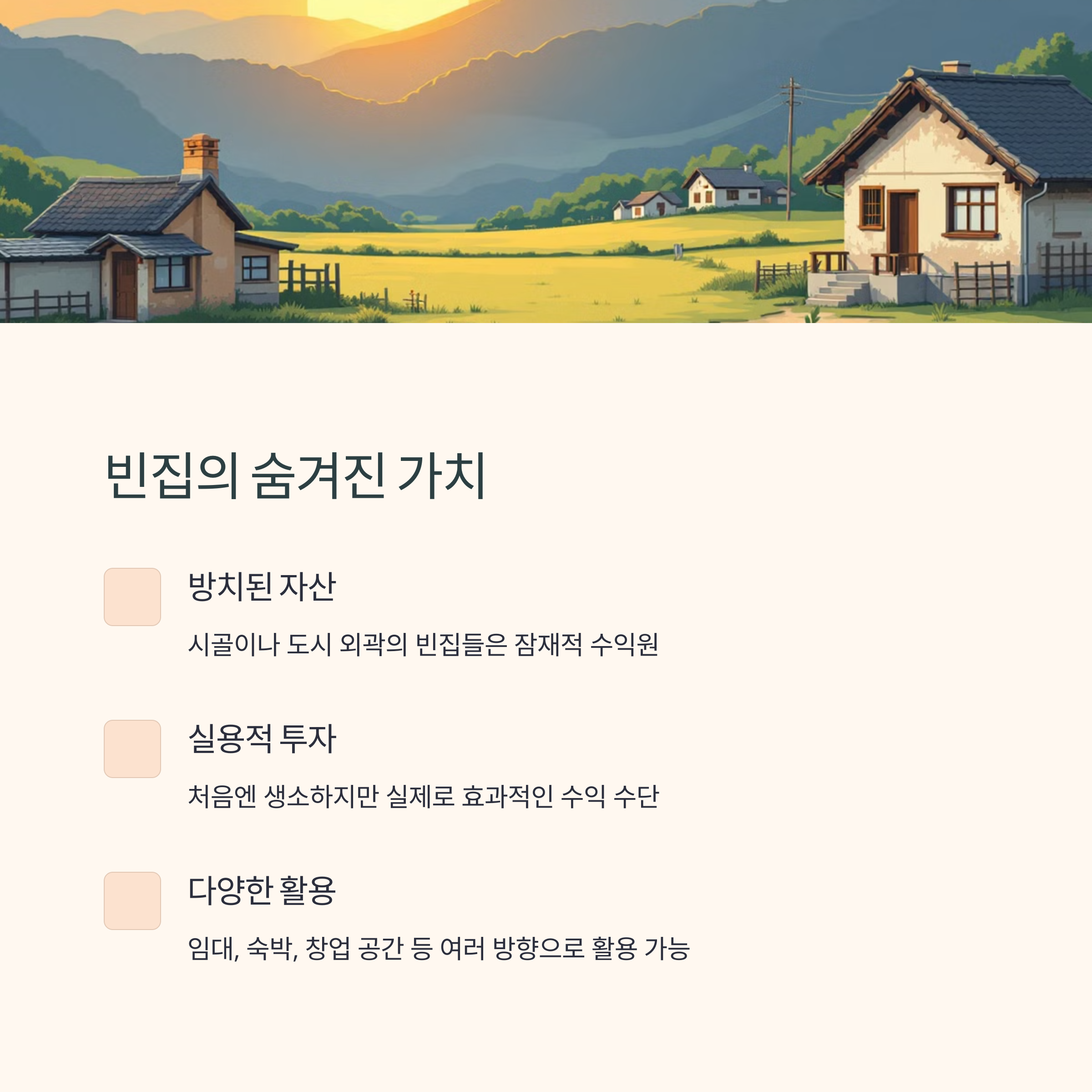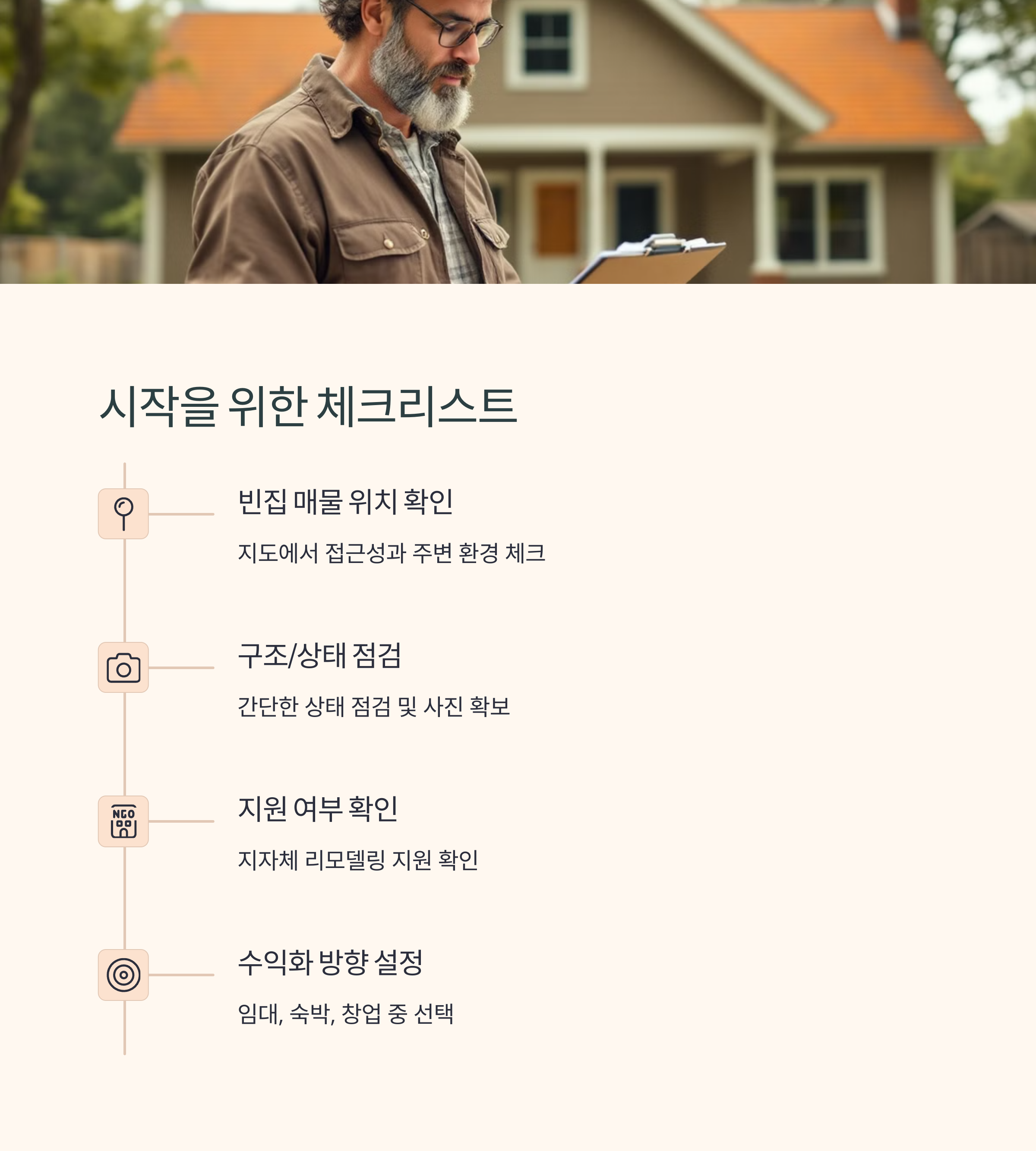 빈집 재테크, 생각만 하지 말고 바로 시작해보세요! 아래 체크리스트로 점검해보시면 한 걸음 더 가까워질 수 있어요.