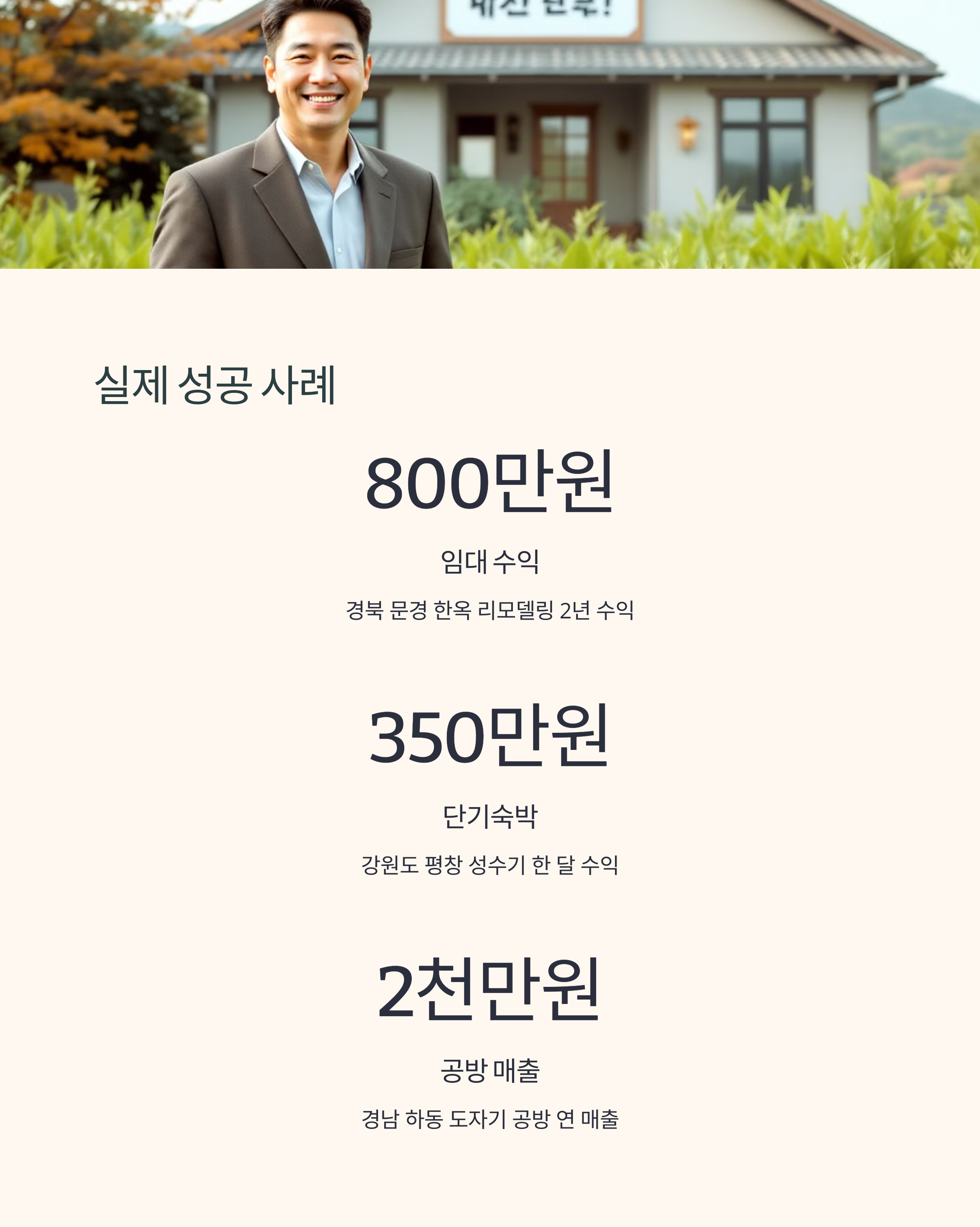 - 수익화 방향 설정 (임대, 숙박, 창업)