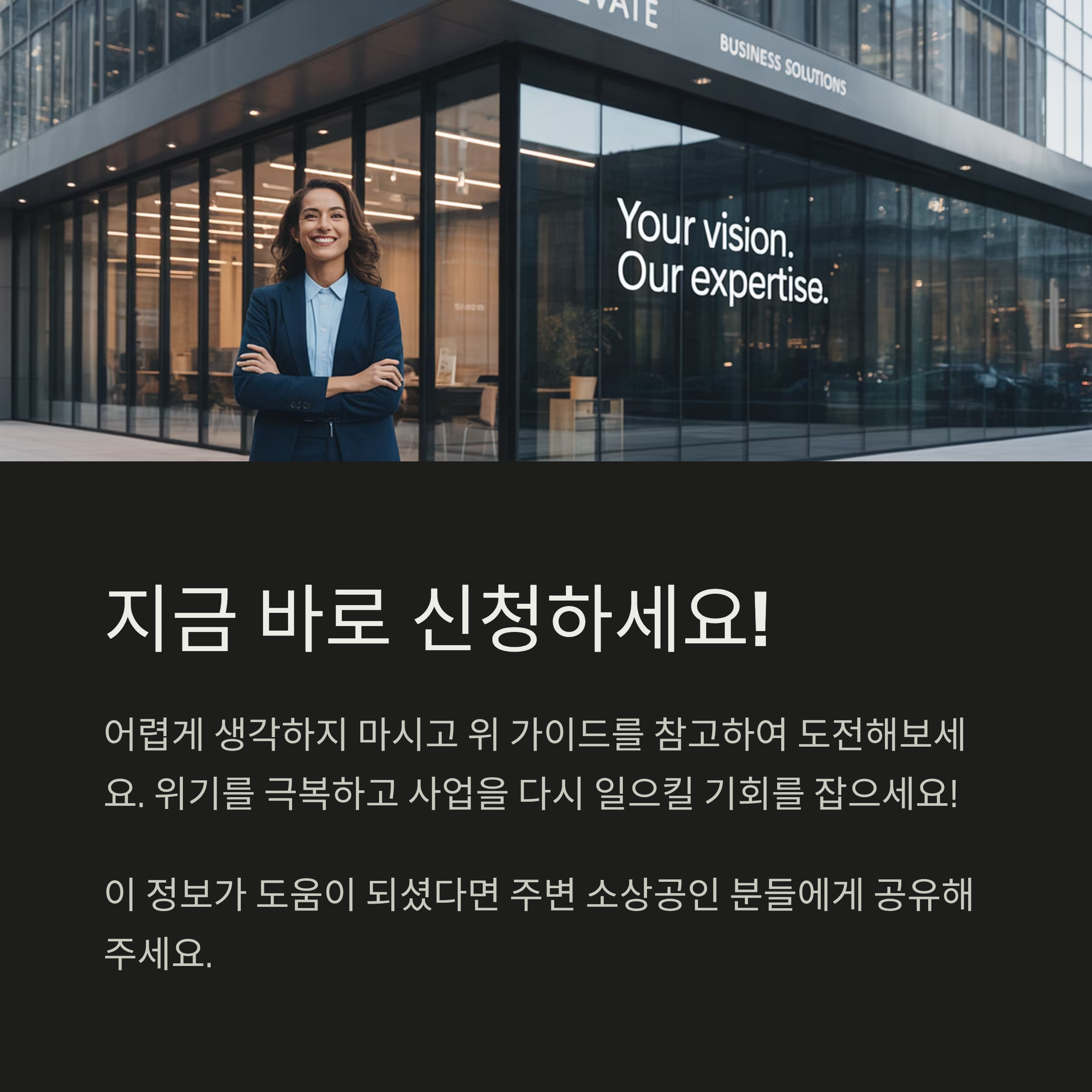 소상공인 긴급경영안정자금 신청, 이제 어렵게 생각하지 마시고 위 가이드를 참고하여 도전해보세요! 지금 당장 필요한 자금을 확보하여 위기를 극복하고, 사업을 다시 일으킬 수 있는 기회를 잡으시길 바랍니다.