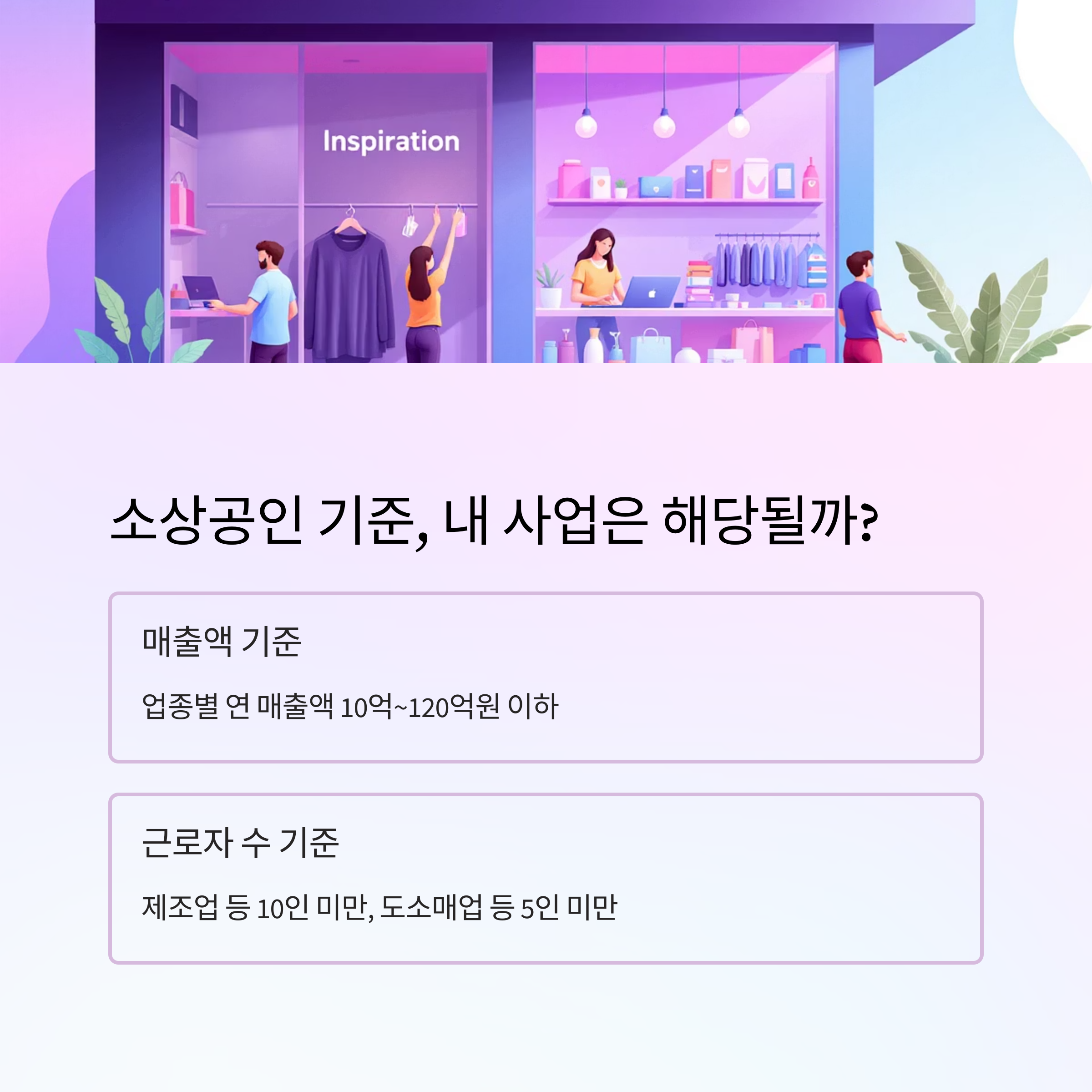 이 두 가지 기준을 모두 충족해야 소상공인으로 인정되어 정부 지원 사업에 신청할 수 있는 기본 자격을 갖추게 됩니다. 간혹 비영리사업자나 비영리법인(고유번호증 소지자)은 지원 대상에서 제외될 수 있으니 이 부분도 함께 확인해 주세요.