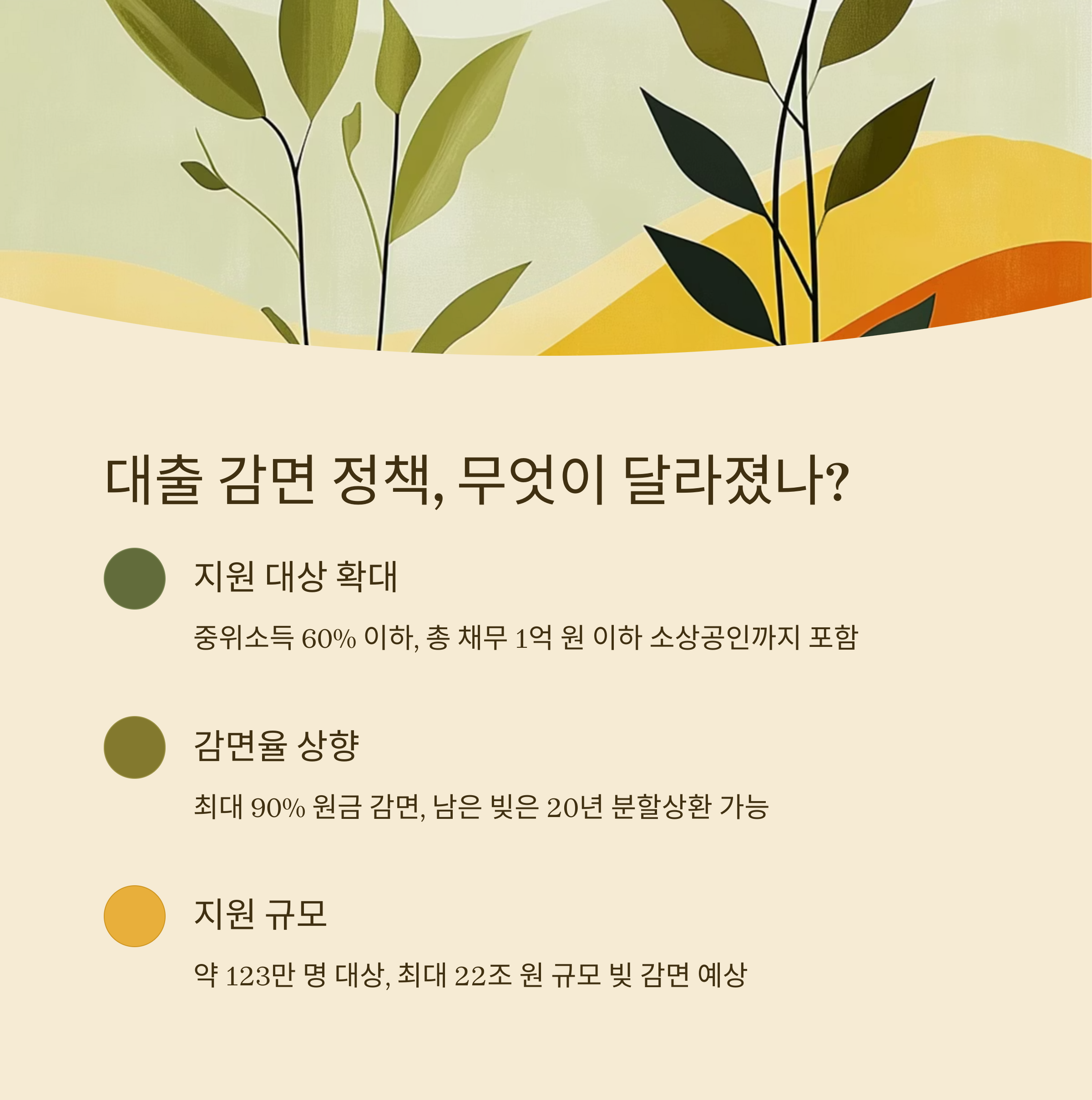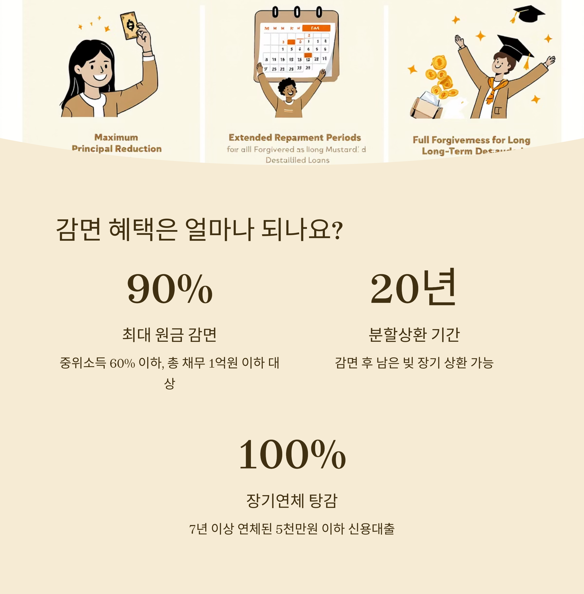 - 감면 후 잔여 채무는 최대 20년 분할상환 가능