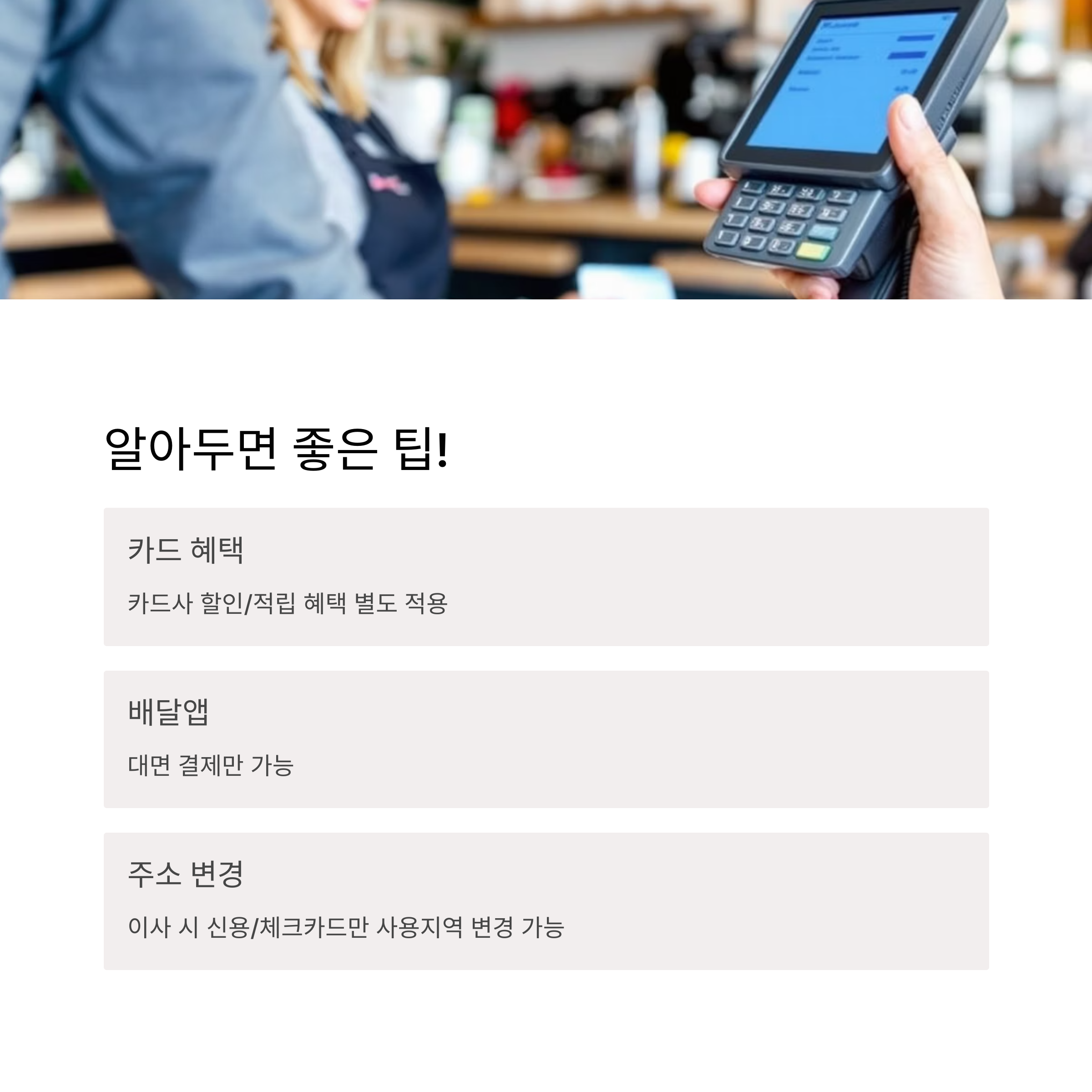 • 온라인 전자상거래 (쇼핑몰, 배달앱은 대면 결제만 가능)
