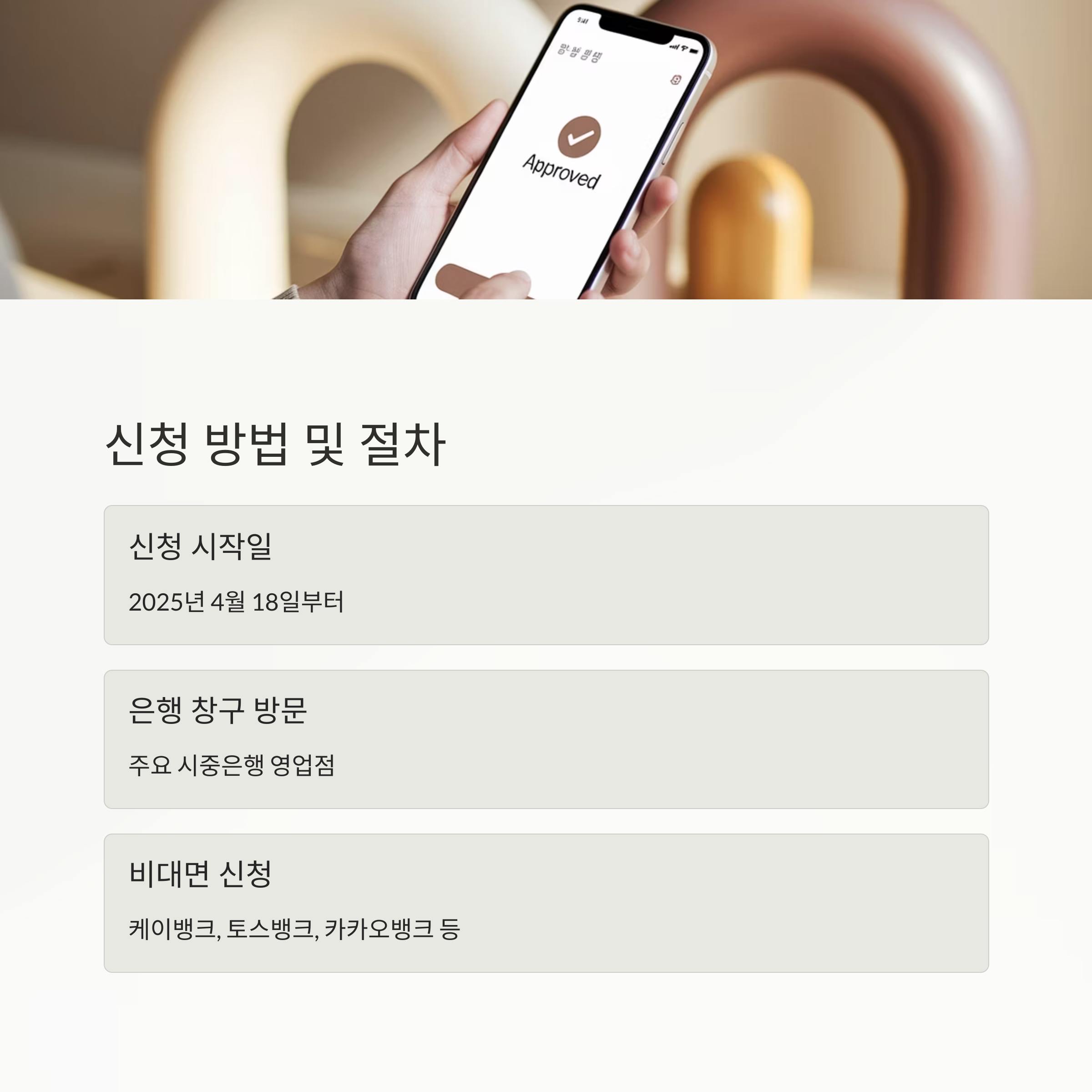 | 비대면 신청 | 케이뱅크, 토스뱅크, 카카오뱅크 등 인터넷은행 예정 |