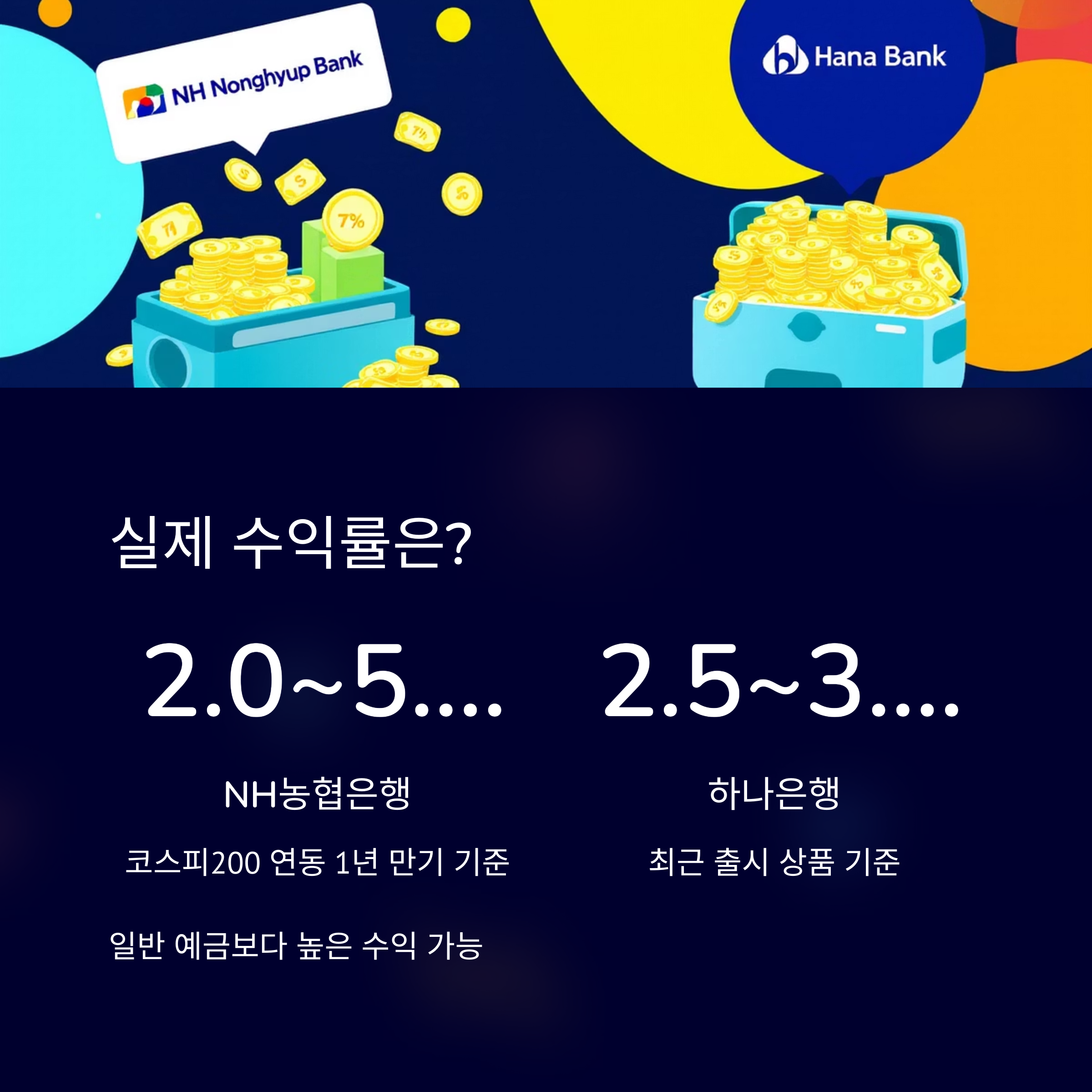 예를 들어, NH농협은행의 2025년형 ELD 상품은 코스피200 지수를 기초자산으로 하며, 1년 만기 기준 연 2.0~5.0%의 수익률을 제시합니다. 하나은행의 경우 최근 출시 상품에서 최저 연 2.5%, 최고 연 3.1%의 수익률을 기대할 수 있습니다.