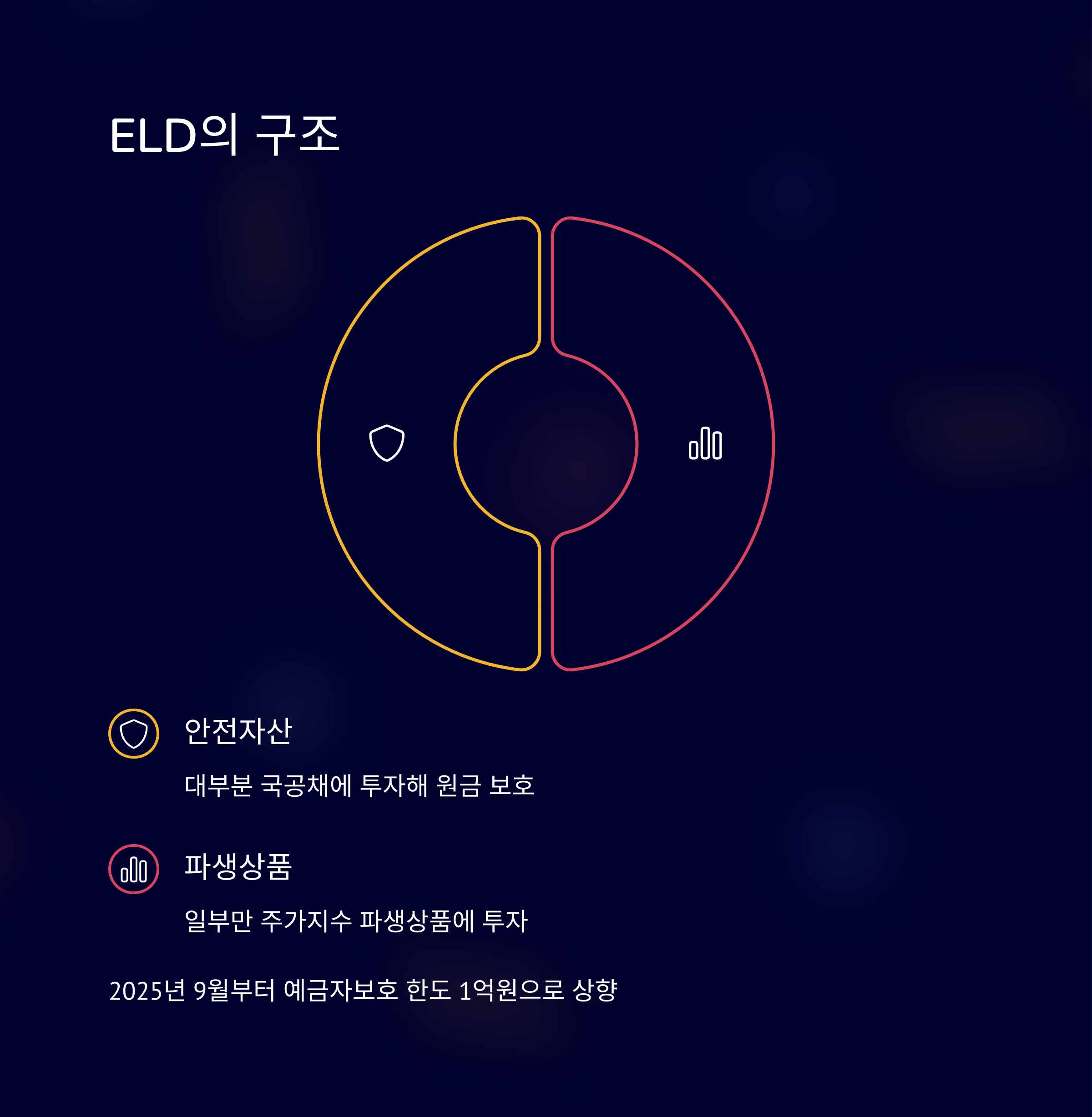 ELD의 구조는 일반 정기예금과 유사하지만, 예치금의 대부분을 국공채 등 안전자산에 투자해 원금을 보호하고, 일부만을 주가지수 파생상품에 투자해 수익을 노립니다.