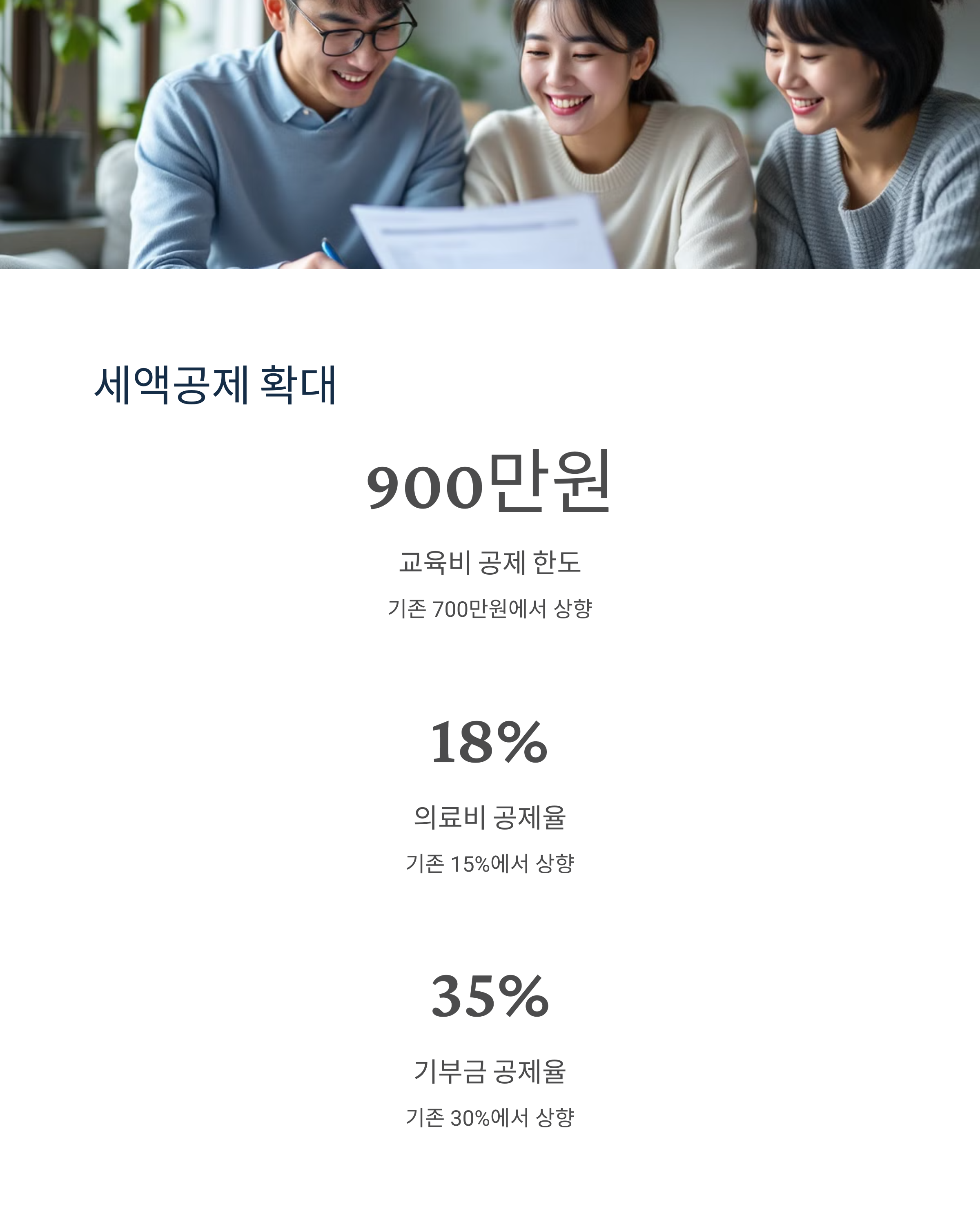 세금을 줄이는 가장 좋은 방법은 정부가 제공하는 세액공제 및 감면 혜택을 적극 활용하는 것입니다. 2025년에는 교육비, 의료비 공제 한도가 확대되며, 기부금 세액공제율도 상향 조정됩니다. 아래 표에서 주요 세액공제 변화를 확인하세요.