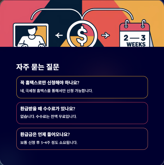 지금 바로 홈택스에 접속해 환급 대상 여부를 확인해보세요. 특히 2020년도 환급 대상자는 2025년까지 꼭 신청해야 한다는 점, 기억하세요!