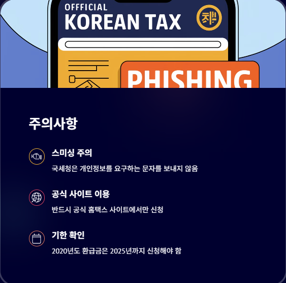 - 스미싱 주의! 국세청은 개인정보를 요구하는 문자를 보내지 않습니다.