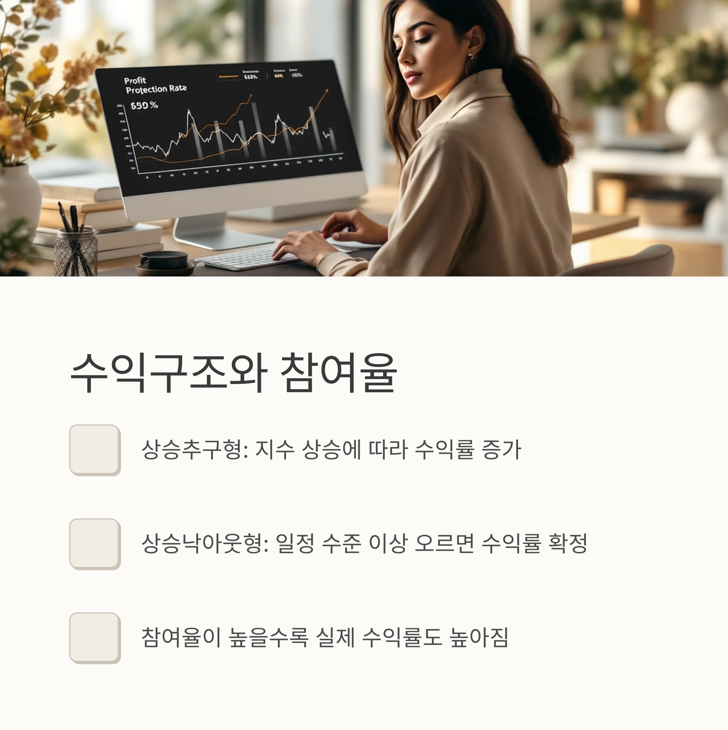 상품별로 수익률 산정 방식과 참여율이 다르므로, 조건을 꼼꼼히 비교해야 합니다.