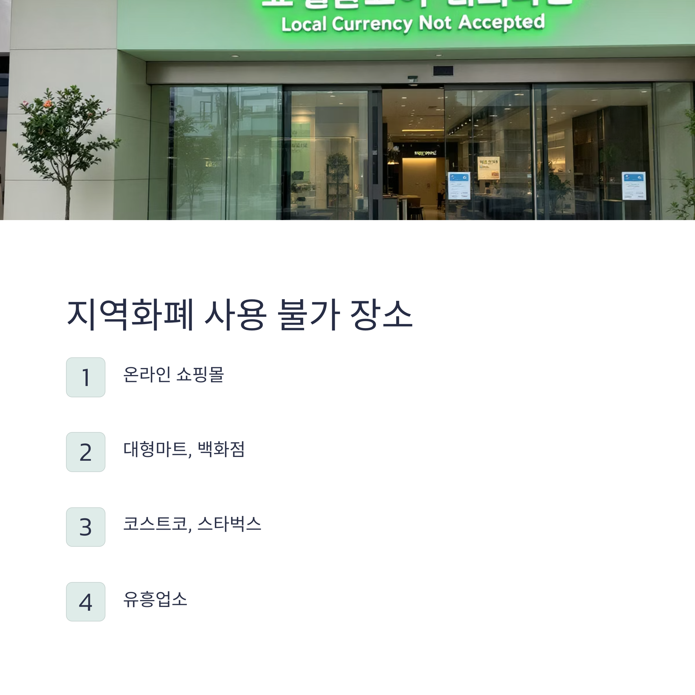 • 주소지 내 매출 30억 원 이하 소상공인에게만 사용 가능하고, 코스트코·스타벅스·백화점·온라인몰·유흥업종 등에서는 사용 불가