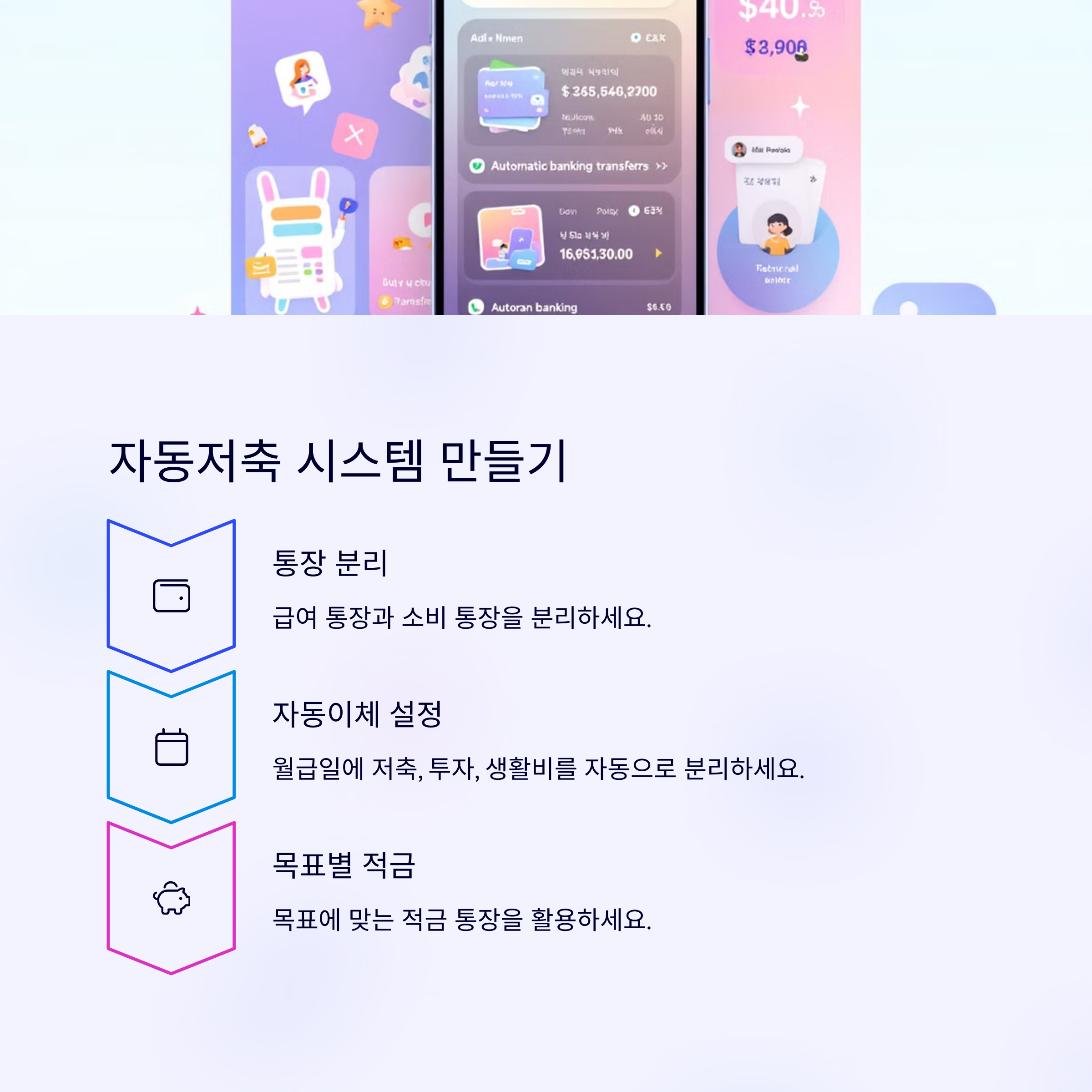 돈을 모으는 사람과 그렇지 못한 사람의 차이는 습관의 자동화에 있어요. 급여일마다 자동으로 분배되도록 설정해두면 절대 손대지 않게 됩니다.