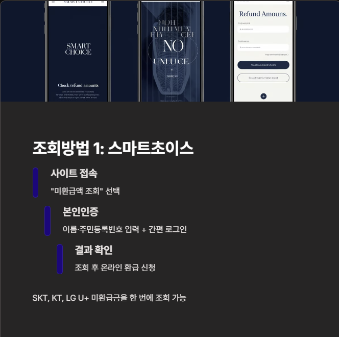 - 장점: SKT, KT, LG U+ 미환급금을 한 번에 조회 가능