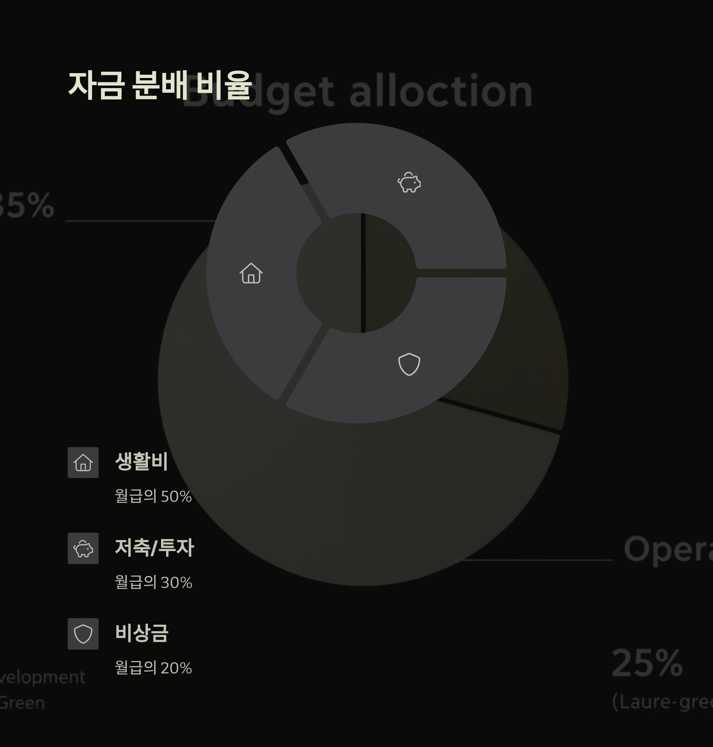 - 자금 분배 계획 수립: 월급을 받은 후, 생활비, 저축/투자, 비상금 등의 항목으로 자금을 분배합니다. 예를 들어, 월급의 50%는 생활비, 30%는 저축/투자, 20%는 비상금으로 설정할 수 있습니다.
