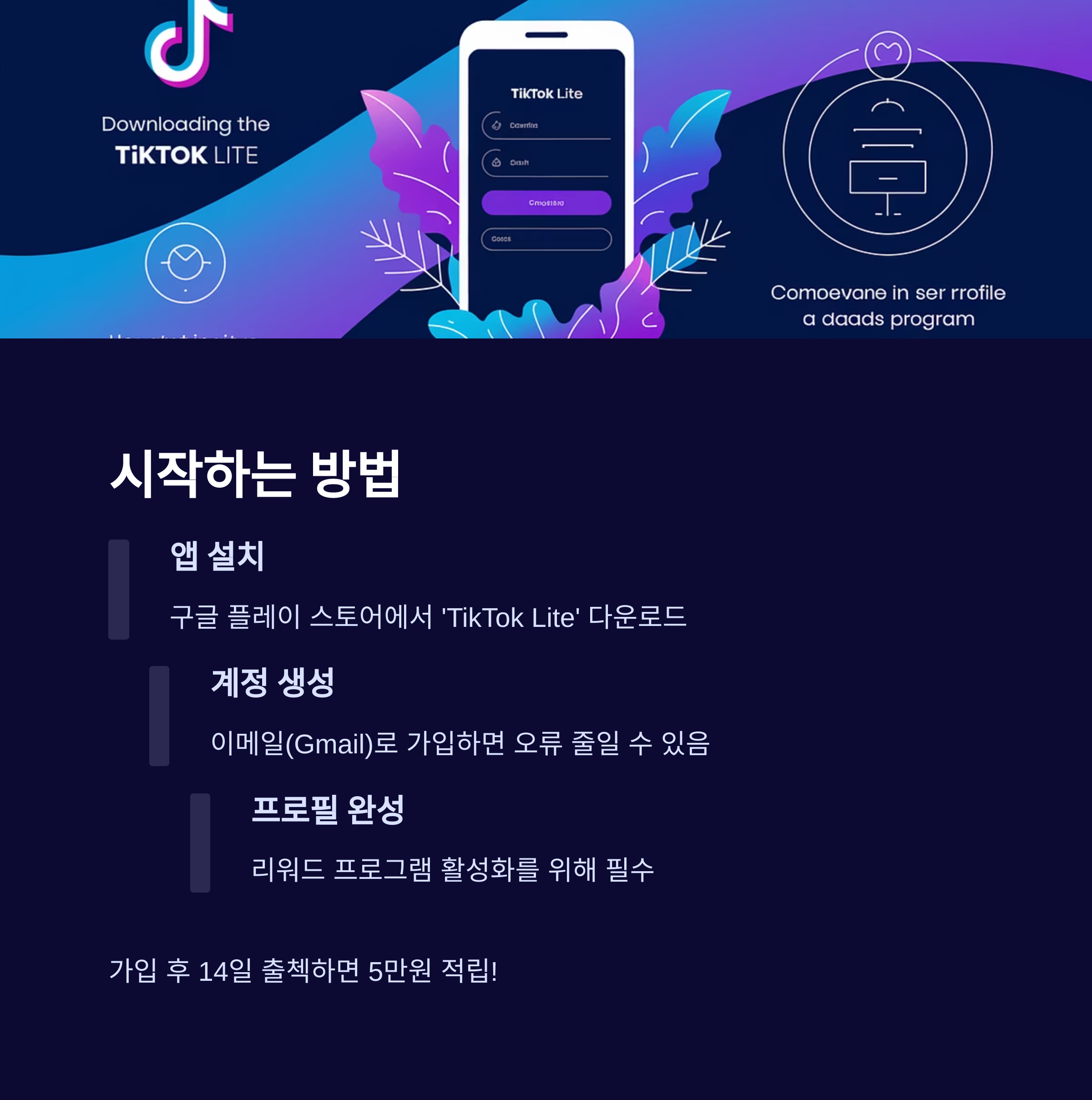 틱톡 라이트 가입하고 5만원 적립 받기​