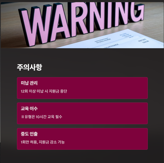 - 12회 이상 미납 시 지원금이 중단됩니다.