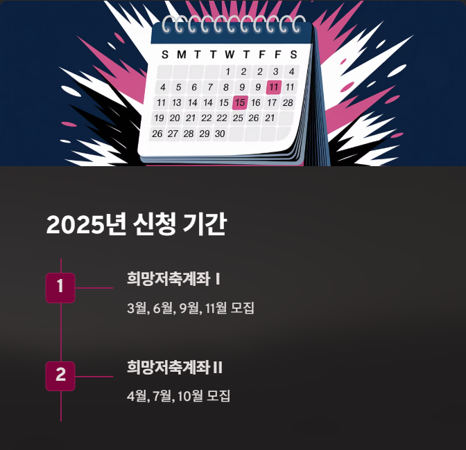 2025년 희망저축계좌Ⅰ과 Ⅱ의 신청 기간은 다음과 같습니다: