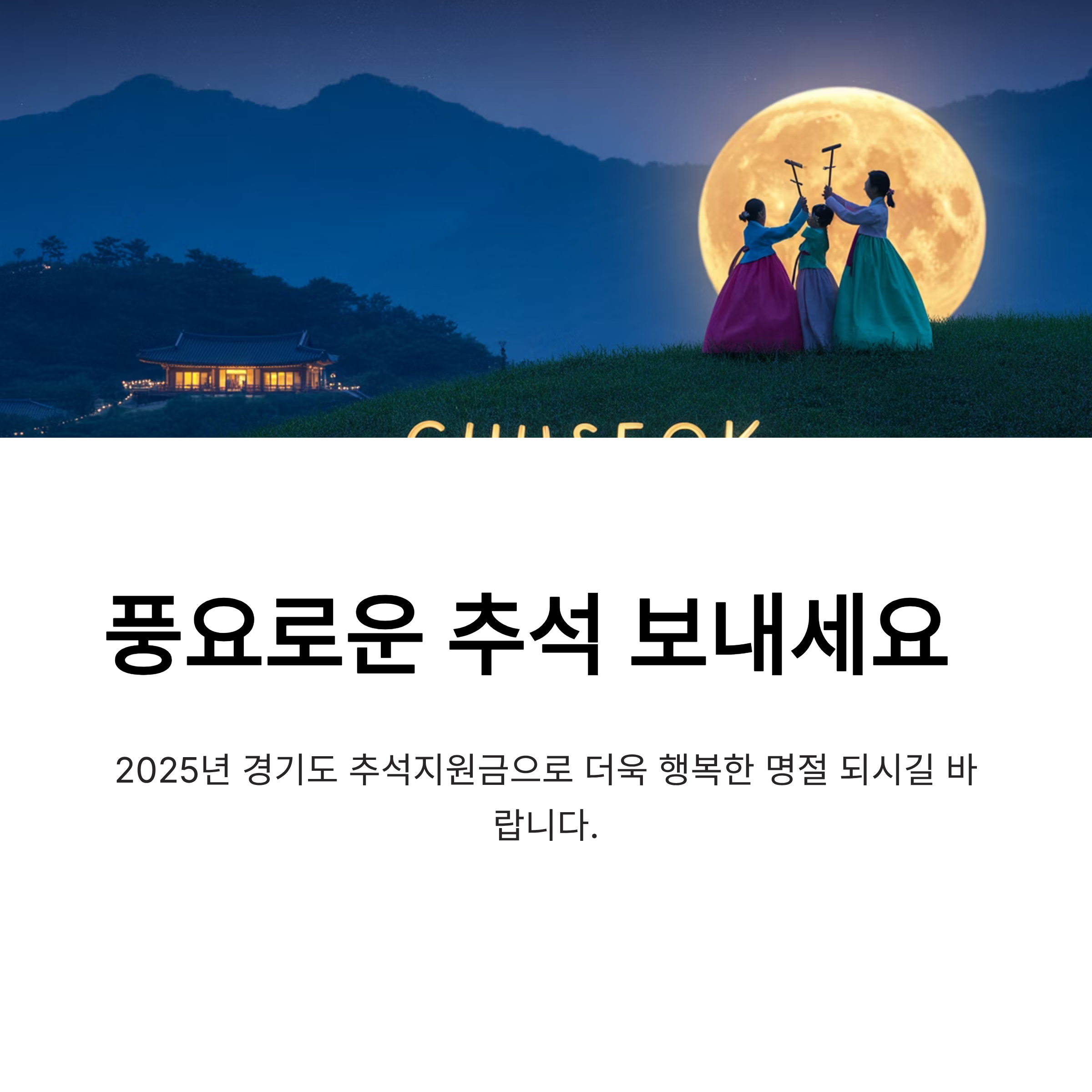 이번 추석, 2025년 경기도 추석지원금으로 더욱 풍요롭고 행복한 명절 보내시길 바랍니다.