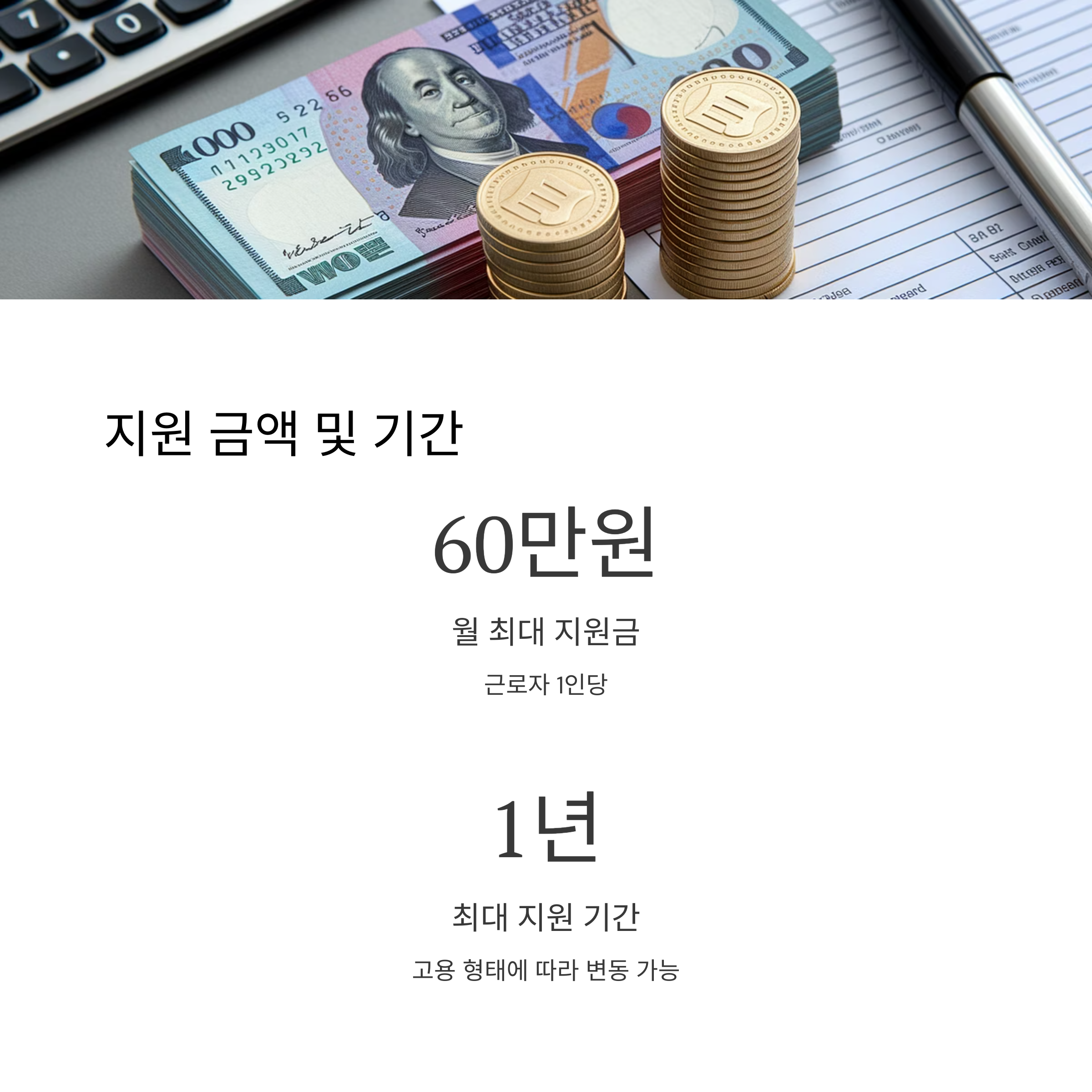 • 지원 금액: 근로자 1인당 월 최대 60만 원