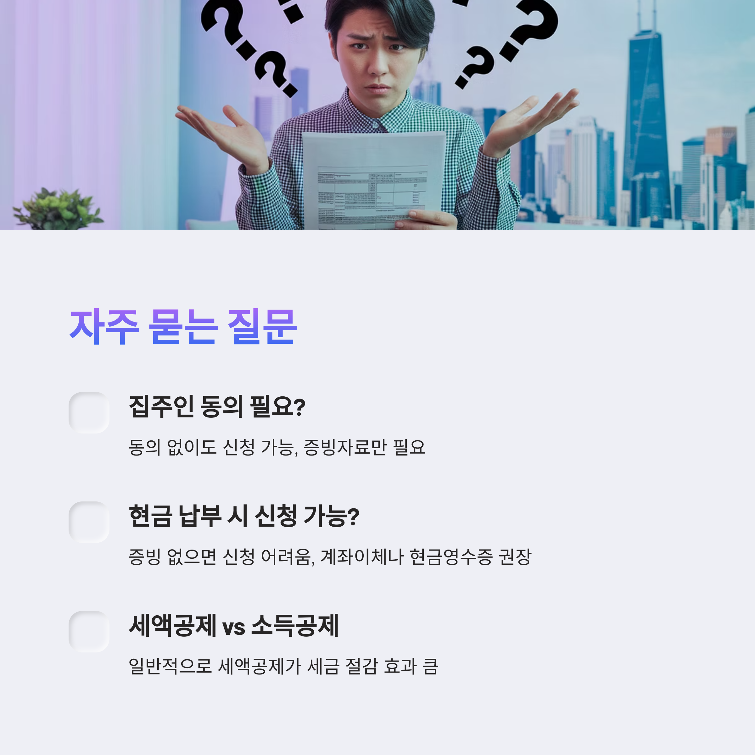 A3. 증빙 자료가 없으면 신청이 어렵습니다. 따라서 월세는 계좌이체나 현금영수증을 통해 납부하여 증빙을 확보하는 것이 중요합니다 .