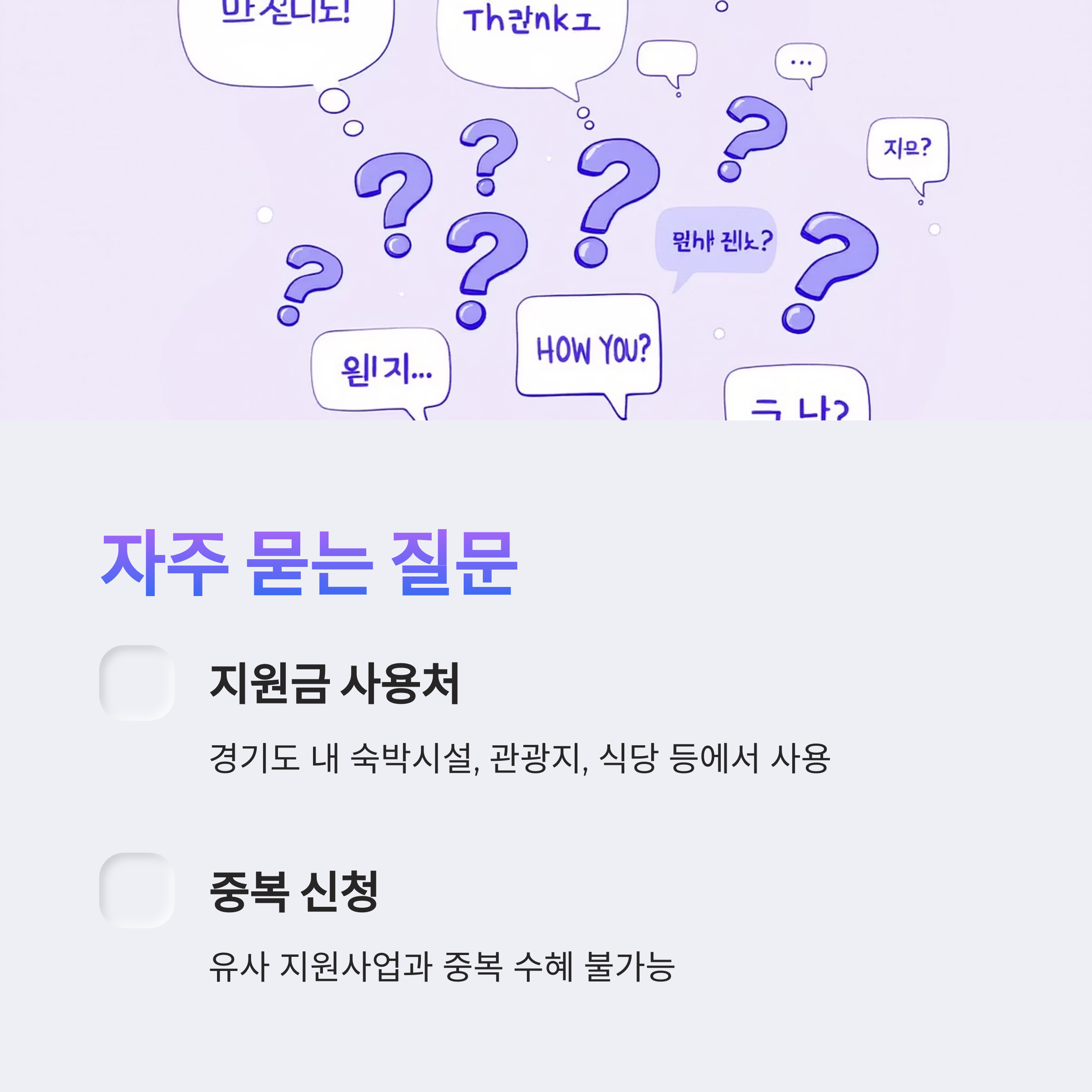 Q2: 지원금을 받으면 경기도 내에서만 사용해야 하나요? A2: 일반적으로 경기도 휴가비 지원사업은 경기도 내 관광 활성화를 목적으로 하므로, 지원금은 경기도 내 숙박 시설, 관광지, 식당 등에서 사용하도록 제한될 수 있습니다. 구체적인 사용처에 대한 규정은 사업 공고 시 명확히 안내되니, 사용 전에 반드시 확인하시는 것이 중요합니다.