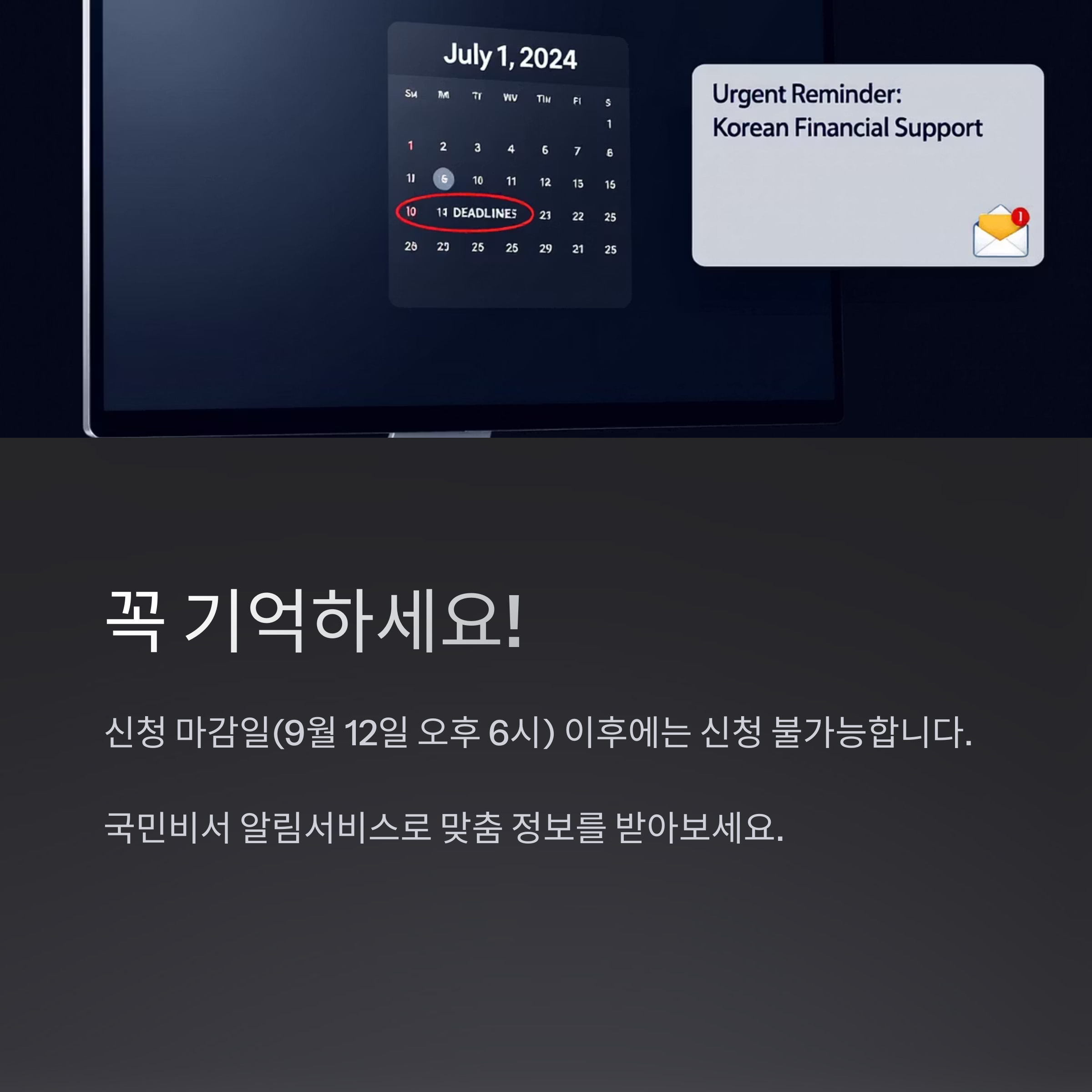 - 주의: 기간 내에 신청하지 않으면 지원금을 받을 수 없습니다.