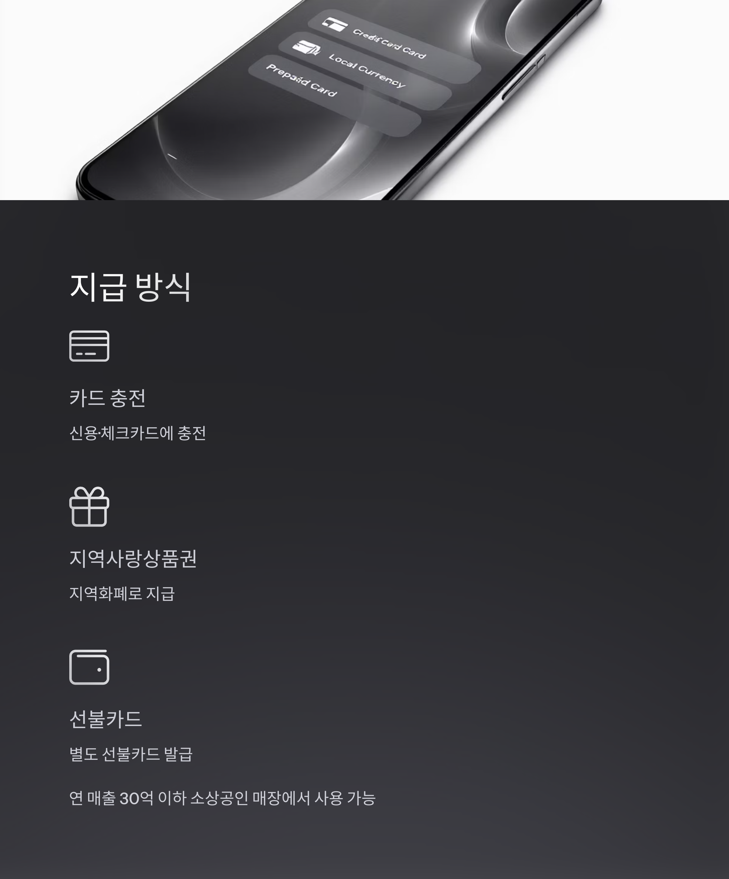 - 지급 방식: 신용·체크카드 충전, 지역사랑상품권, 선불카드 중 선택 가능