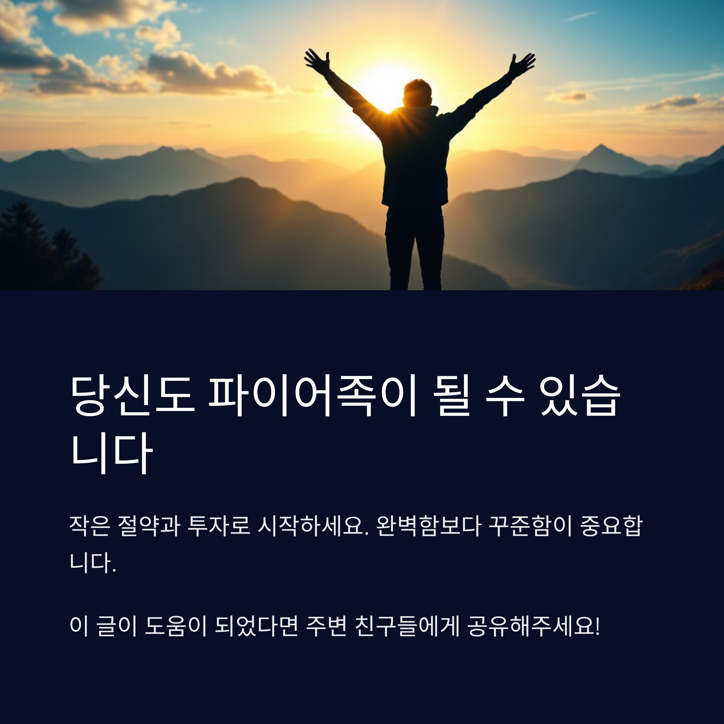 누구나 파이어족이 될 수는 없지만, 누구나 그 방향으로 조금씩 나아갈 수는 있습니다. 중요한 건 완벽함이 아니라 꾸준함이에요.