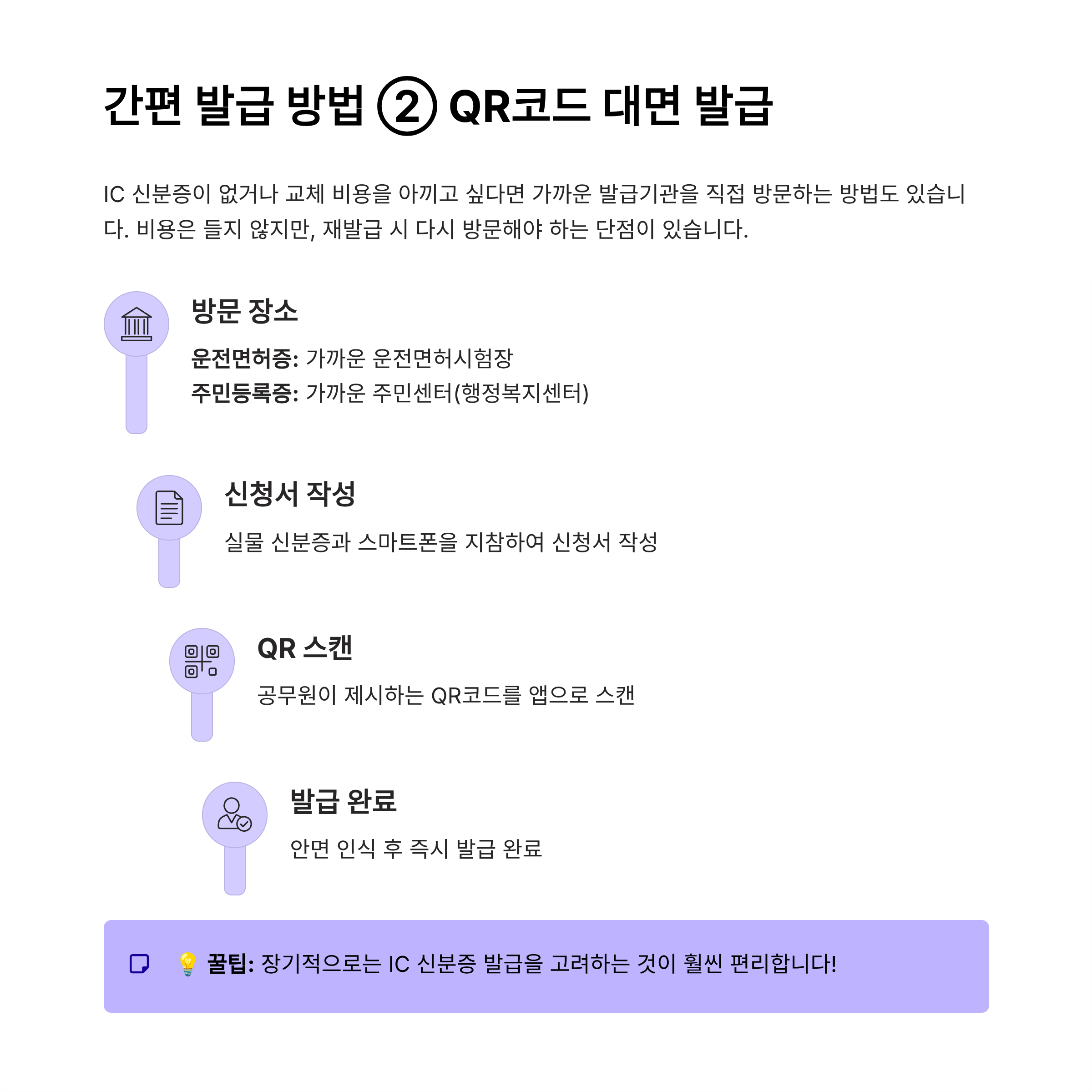 이 방식은 비용은 들지 않지만, 휴대폰 분실이나 앱 삭제 시 재발급을 위해 다시 기관을 방문해야 하는 단점이 있습니다. 따라서 장기적으로는 IC 신분증 발급을 고려하는 것이 훨씬 편리합니다.